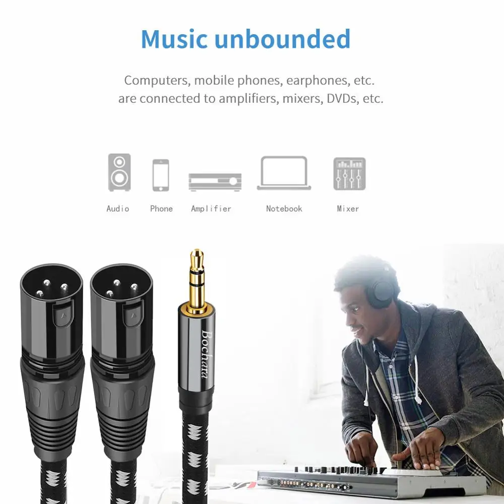 Стереокабель Bochara в оплетке 3,5 мм, штекер-двойной XLR штекер OFC Aux аудио кабель в фольге + Плетеный экранированный 1,5 м 3 м