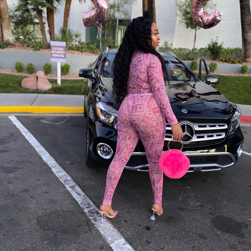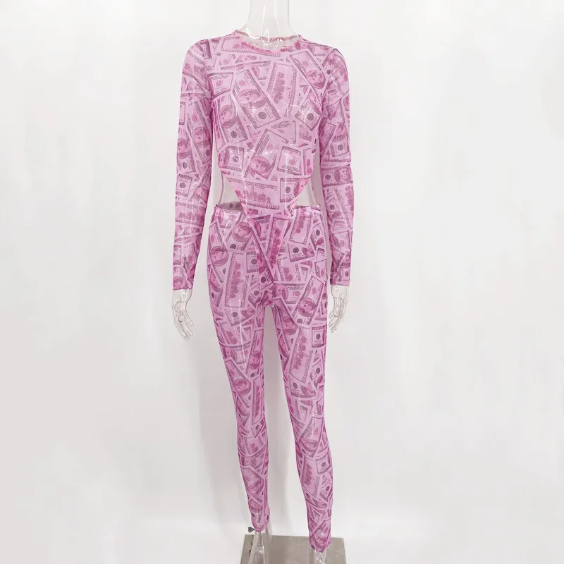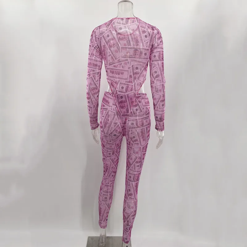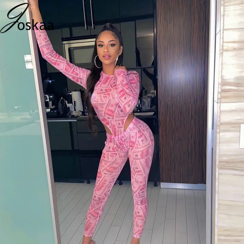 Комбинезон женский сетчатый с принтом Joskaa, боди с длинным рукавом и штаны для ночного клуба, осень 2020
