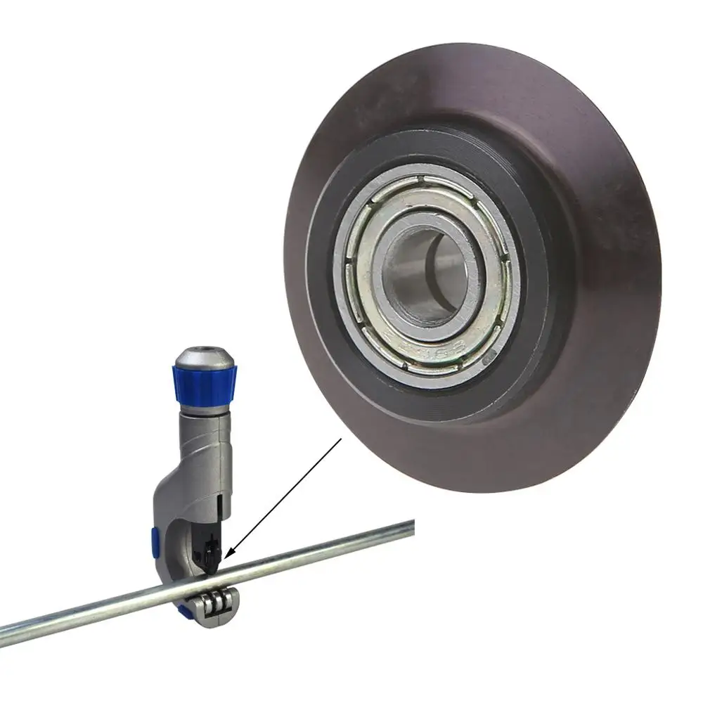 Изготовлен из легированной стали ковки, общая термическая обработка, высокая твердость, сильная способность резки. Центр лезвия увеличивает шариковый подшипник, гибкий и гладкий. Поверхность лезвия черная, не легко ржавеет. Идеально подходит для медных или тонких стенных труб из нержавеющей стали. Это лезвие является аксессуаром для подшипникового трубопровода, который является основным аксессуаром для него.