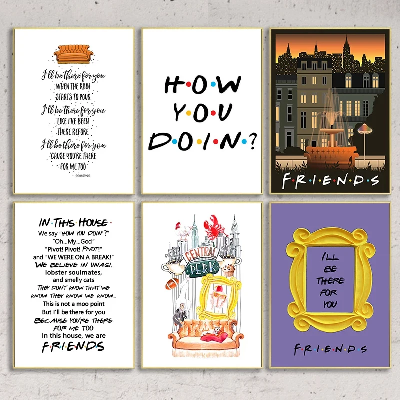 Черно-белый унаги четкости печать друзья ТВ-шоу постер, унаги словарь типография стены Искусство Холст Живопись картина Декор