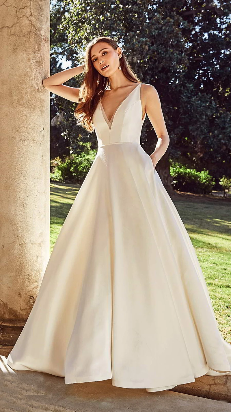 Шикарное платье для невесты, без рукавов, с V-образным вырезом