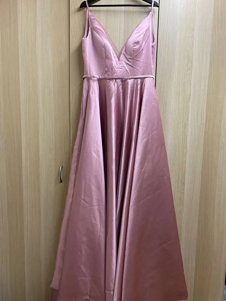 Женское атласное вечернее платье, светло-розовое длинное платье-тра...