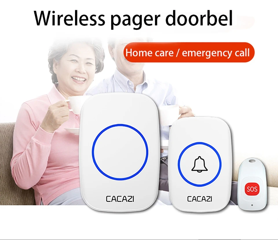 Звонок CACAZI беспроводной для умного дома, с 1 кнопкой и 4 приемниками, 80 м