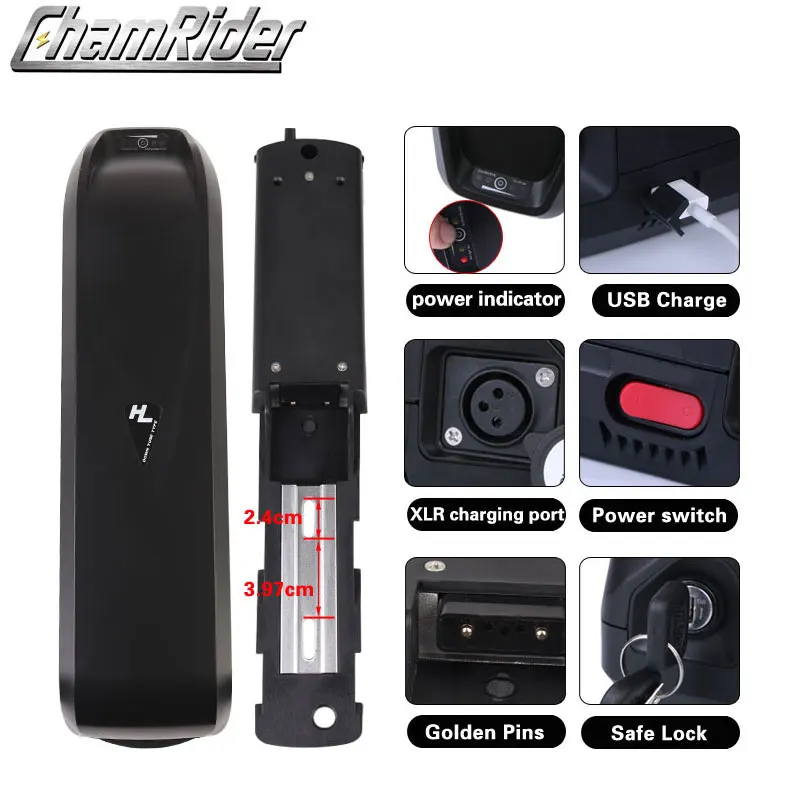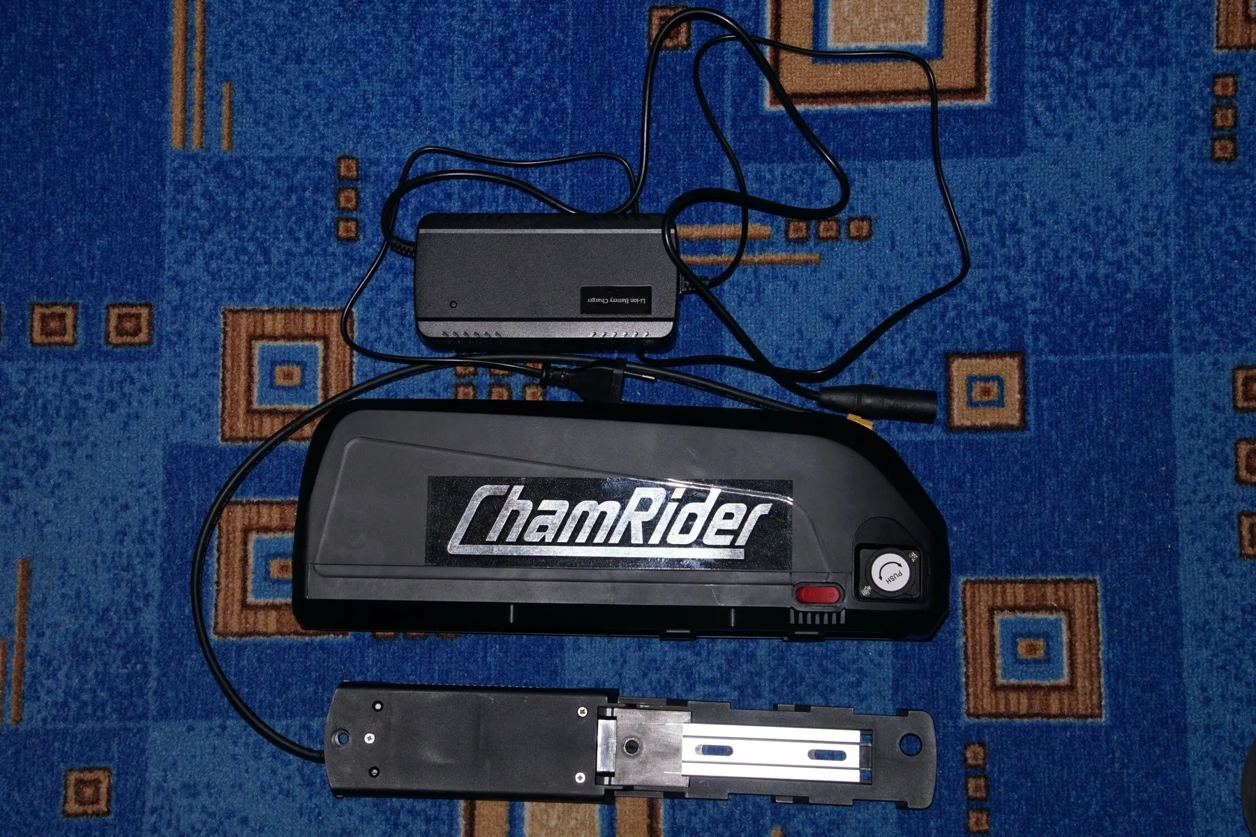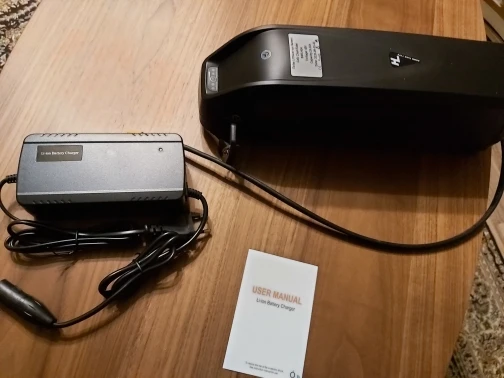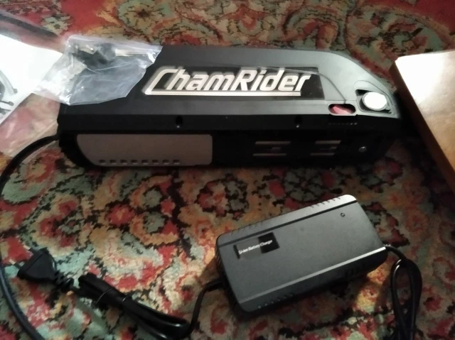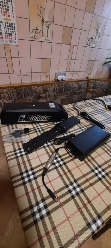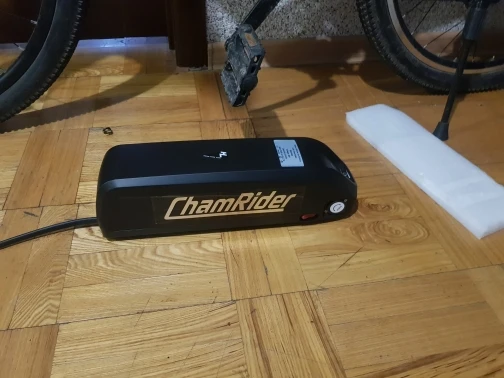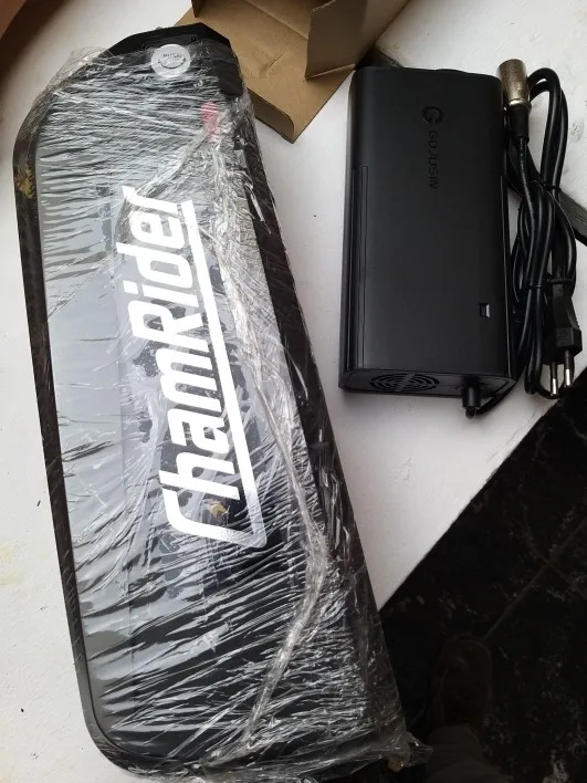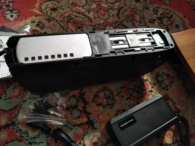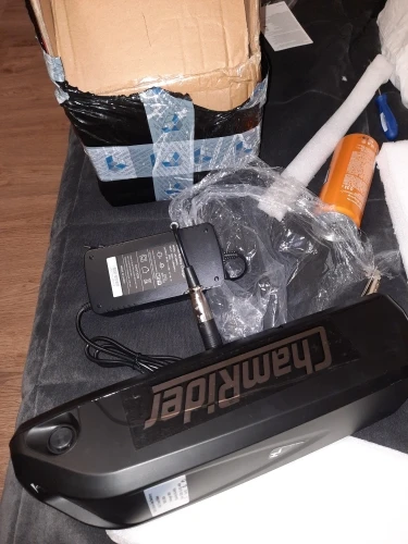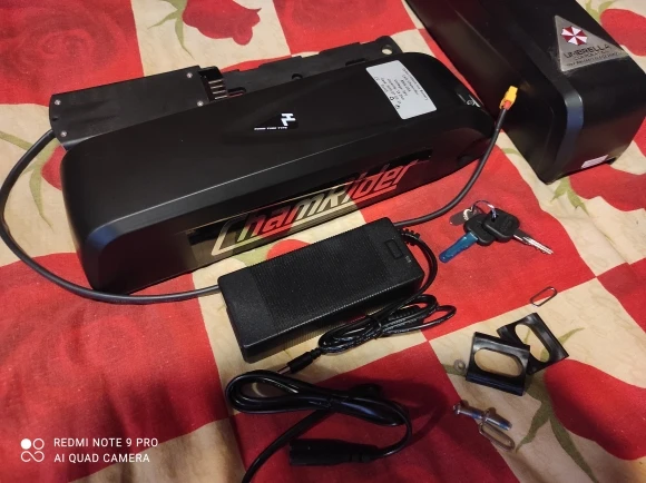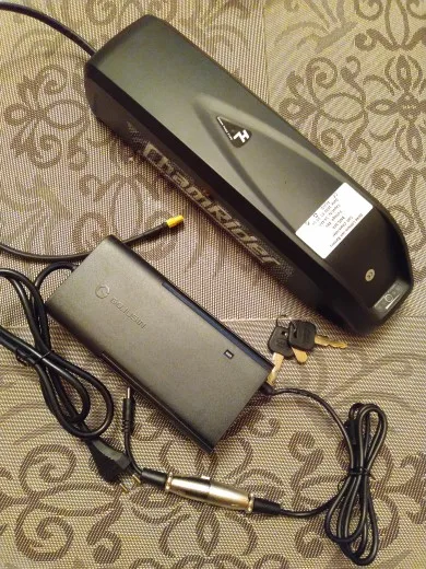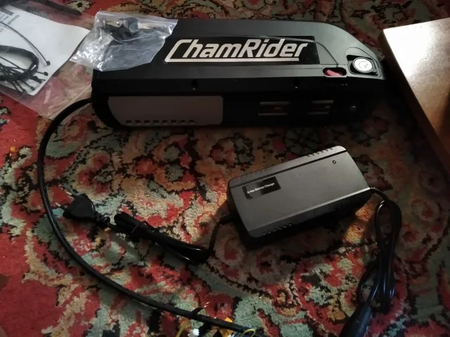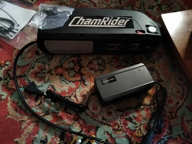 Все огонь! Доставка неделя с России. По емкости не скажу, но на моторе бафанг проезжаю больше сотни крутя педали. Зарядка в комплекте. Оказался немного большеват для моей рамы, но приспособил.