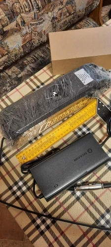 Первое что бросилось в глаза,это качество упаковки. Второе,то что пластик ,явно не дешёвый. Батарея заряжена примерно на 60 процентов,что очень хорошо. зарядное при подключении ,сразу показало зарядку и включился кулер. кстати шум)) нет шума..шелест ,да.