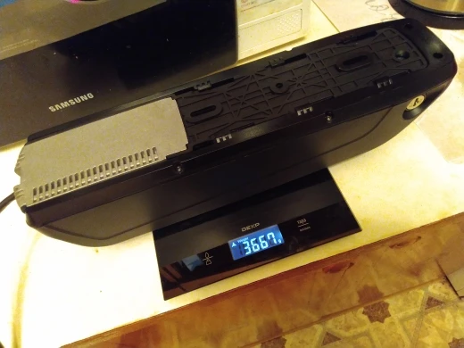 Здоровенная штука. В раму лезть не хочет - придётся на багажнике возить. Весит 5,705 кг. (аккумулятор - 5,380 кг., крепёжная платформа - 0,325 кг.). Шло 40 дней до Челябинской области - продавец умудрился потерять посылку по пути и повторно отправил со склада в России. Теперь жду когда от этого же продавца приедет мотор-колесо со всей сопутствующей требухой и буду потихоньку собирать.
