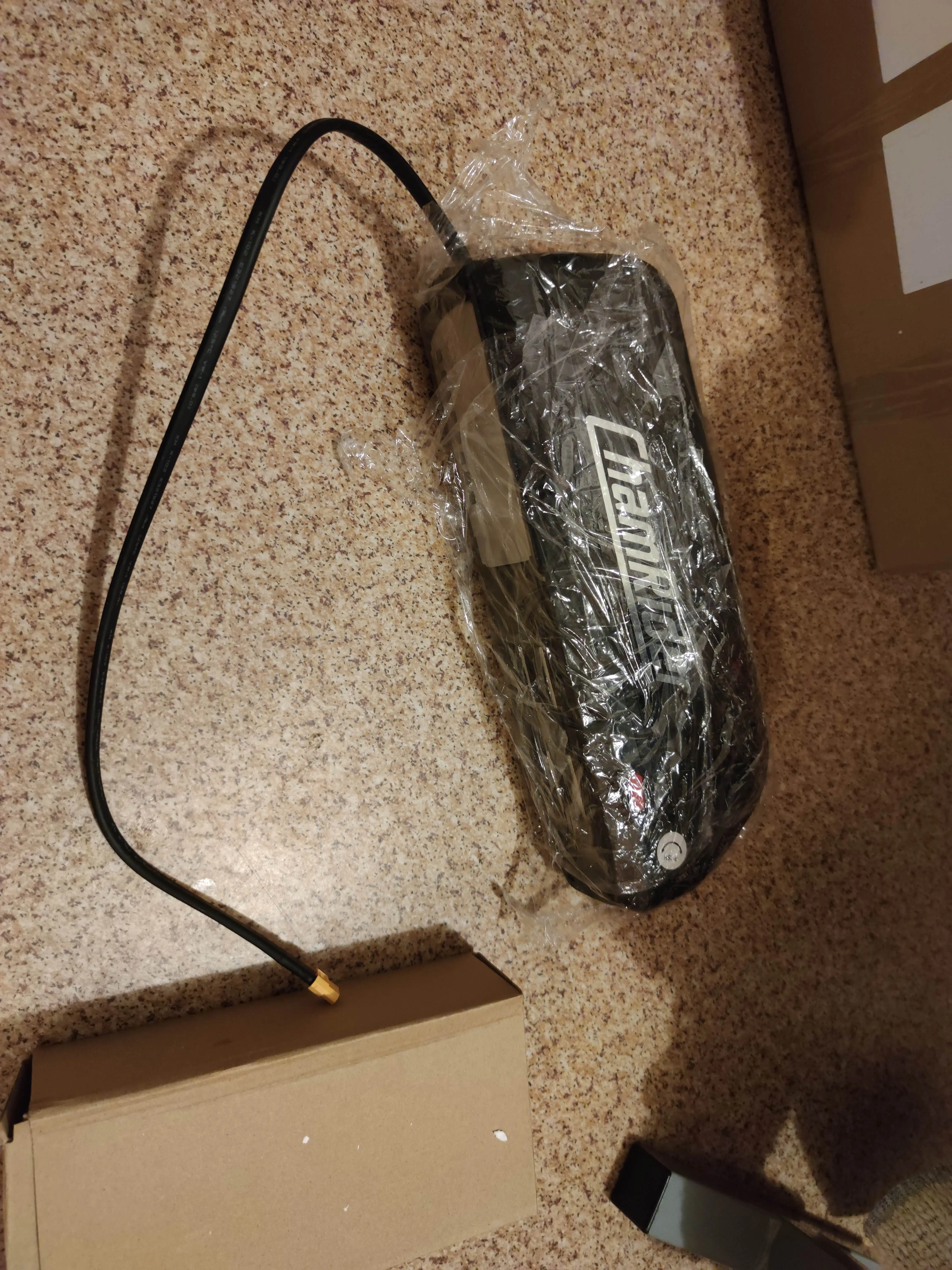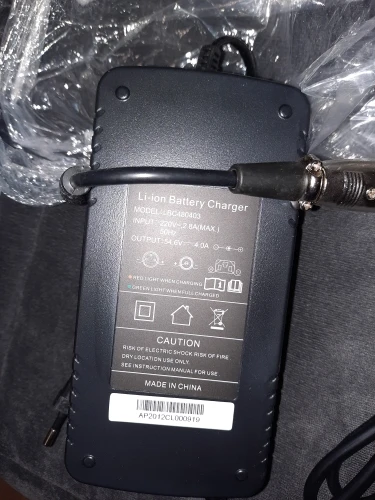 Супер быстрая доставка за 3 дня в Челябинск (товар был доступен из России, но неделю пролежало на почте, т.к. уведомление почему-то сразу не пришло, а что так быстро будет - не ожидал). Выглядит все добротно. Пришёл с зарядом на 3 точки из 4х (если нажать на тест). Непонятно почему при выключенной сбоку кнопке питания на выходе показывает 1,6 Вольт, а не ноль! При полностью заряженном аккумуляторе на выходе 54,5 Вольт (аккумулятор 48V 19,2 AH). Продавец ответил, что это все нормально. На фото на весах масса самого аккумулятора (без основы куда он крепится). Для зарядки нужно включить кнопку сбоку (включать или нет нигде не написано). При первой зарядке сам зарядник сильно вонял нагретой пластмассой, внутри работал вентилятор (пришлось заряжать в ванной комнате с вытяжкой , иначе вонь на всю квартиру).