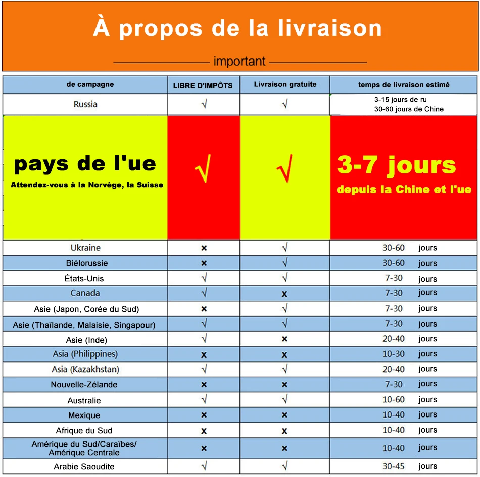 Быстрая доставка. Я получил в течение 5 дней во Францию. Я еще не проверял, но кажется, хорошая упаковка и хорошая доставка