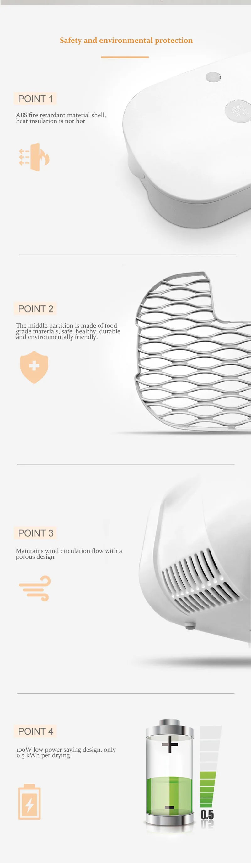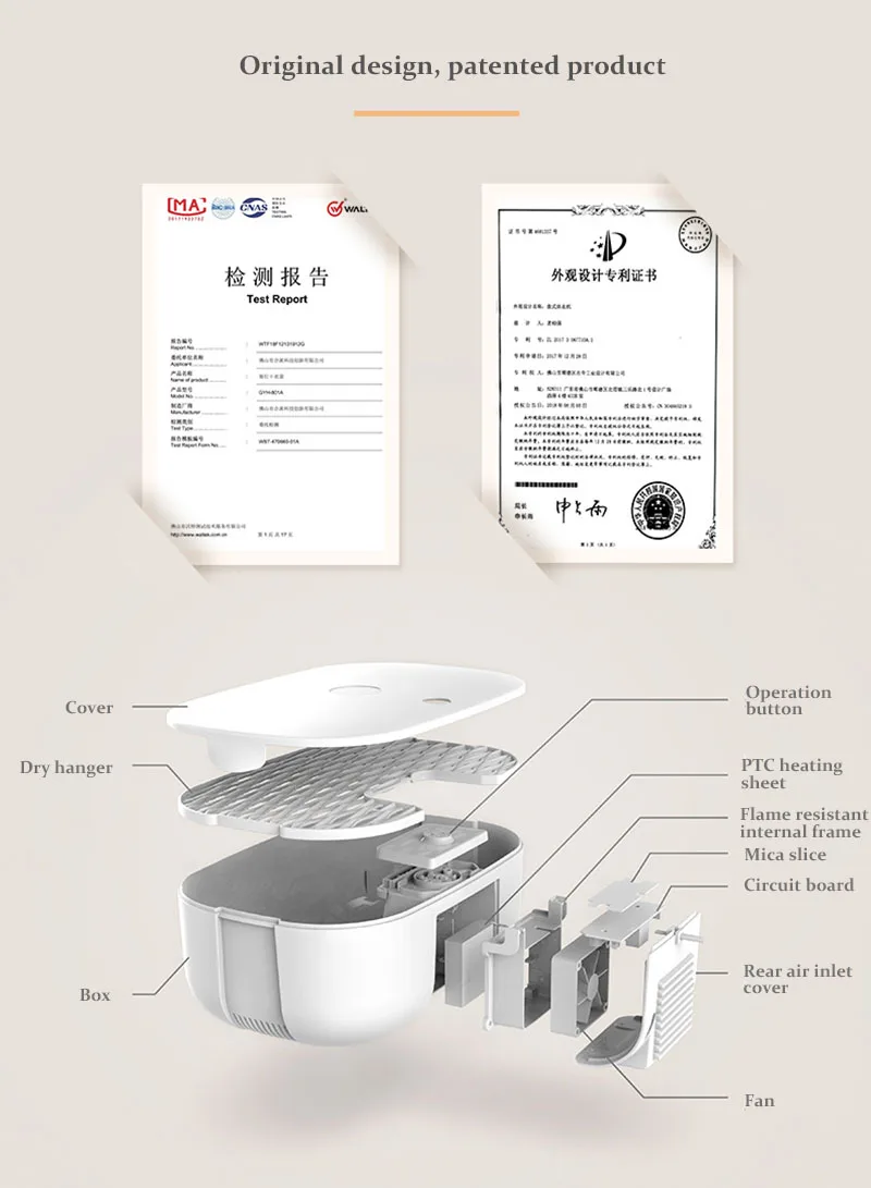 ● 60 ℃ постоянная температура сушки нижний вентилятор быстро излучает тепло, вырабатываемое PTC нагреватель для того, чтобы это коробка пространство