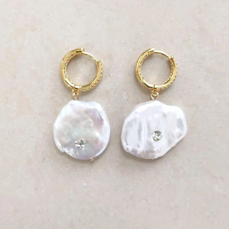 Новинка, серьги из натурального пресноводного жемчуга геометрической формы, корейский дизайн, женские серьги высокого качества, ювелирные изделия ручной работы