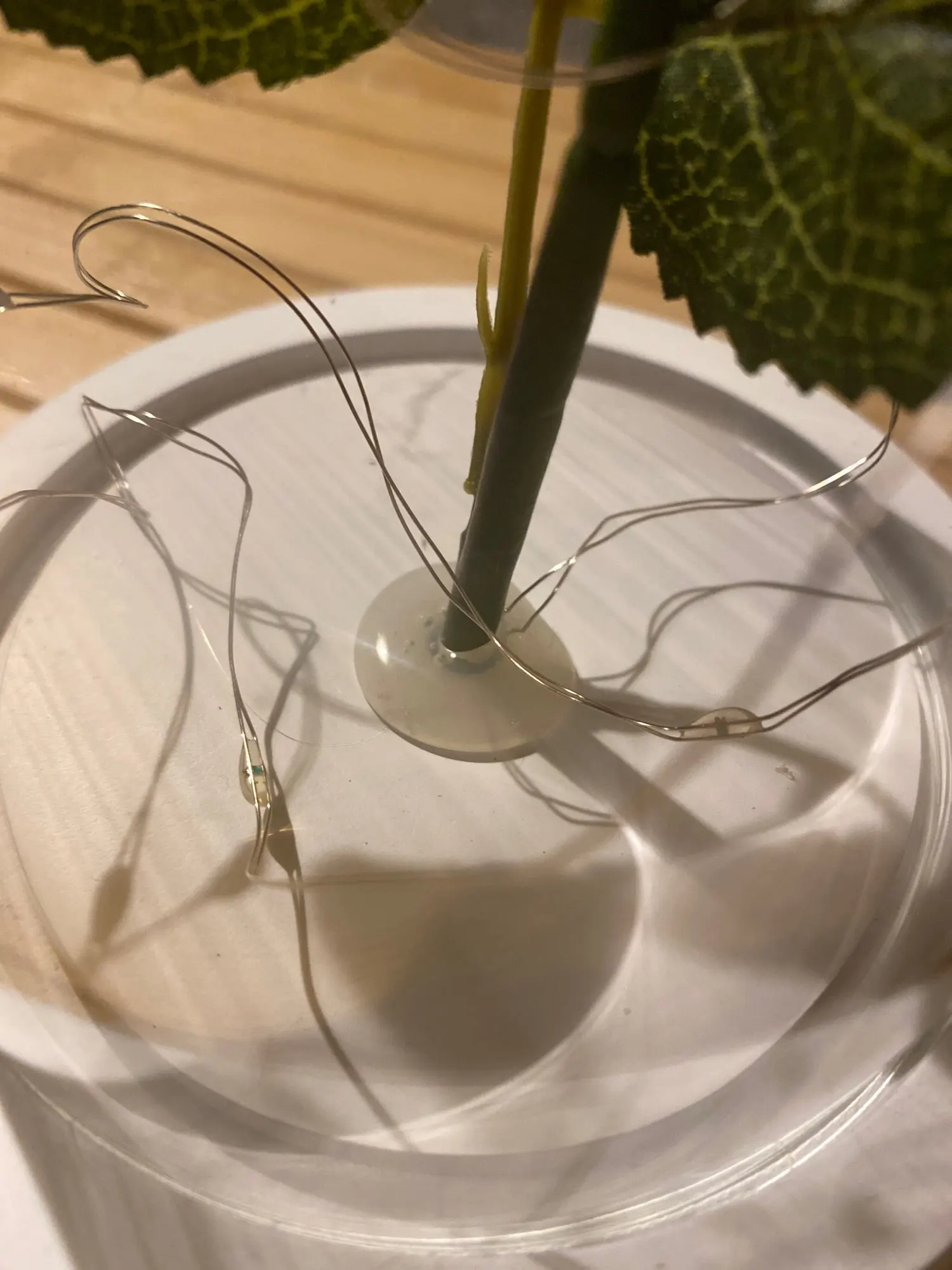 Светодиодная лента, которую вы должны надеть на розу, но это верри легко. Нет батарейки ААА. Хорошо сделано glassdome. Во всем его ОК!:)