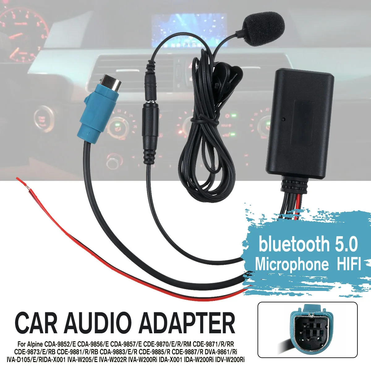 Параметры1. Название: адаптер аудиокабеля2. Модель: E166633. Цвет: черный4. Материал: АБС-пластик5. Расстояние передатчика: 15 м6. Частотная характеристика: 20 Гц-20 кГц7. Диапазон частот: 2,402-2,480 ГГц8. Уровень искажений: ≤ 1%9. Ток: 20 мА · ч10. Название bluetooth: JieRi-BT 590811. Версия bluetooth: 5,012. Напряжение продукта: 12 В13. Длина микрофона: 150 см14. Применимые модели: alpine CDA-9852/E CDA-9856/E CDA-9857/E CDE-9870/E/R/RM CDE-9871/R/RR CDE-9873/E/RB CDE-9881/R/RB CDA-9883/E/R CDE-9885/R CDE-9887/R DVA-9861/Ri IVA-D105/E/RIDA-X001 IVA-W205/E IVA-W202R IVA-W200Ri IDA-X001 IDA-W200Ri IDV-W200Ri