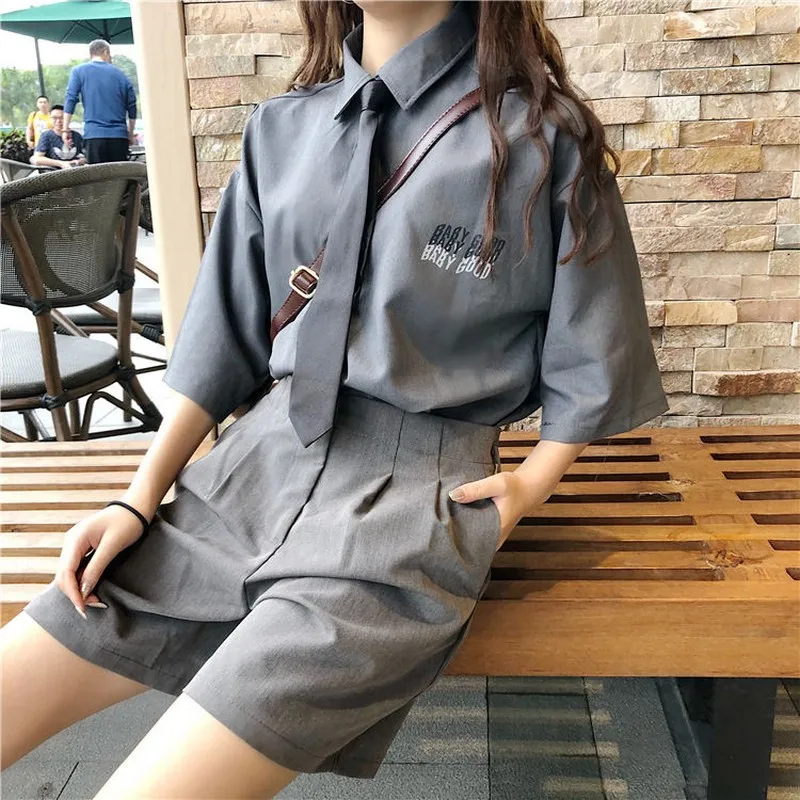 Заказала "White grey set", прислали "Grey set"(( В принципе это не так страшно, но рубашка сшита не качественно, хотя материал очень хороший. Ремень в комплекте не шёл, но галстук был, что порадовало. На шортах нет молнии, они на резинке, это конечно выглядит не так здорово, как было бы с молнией.