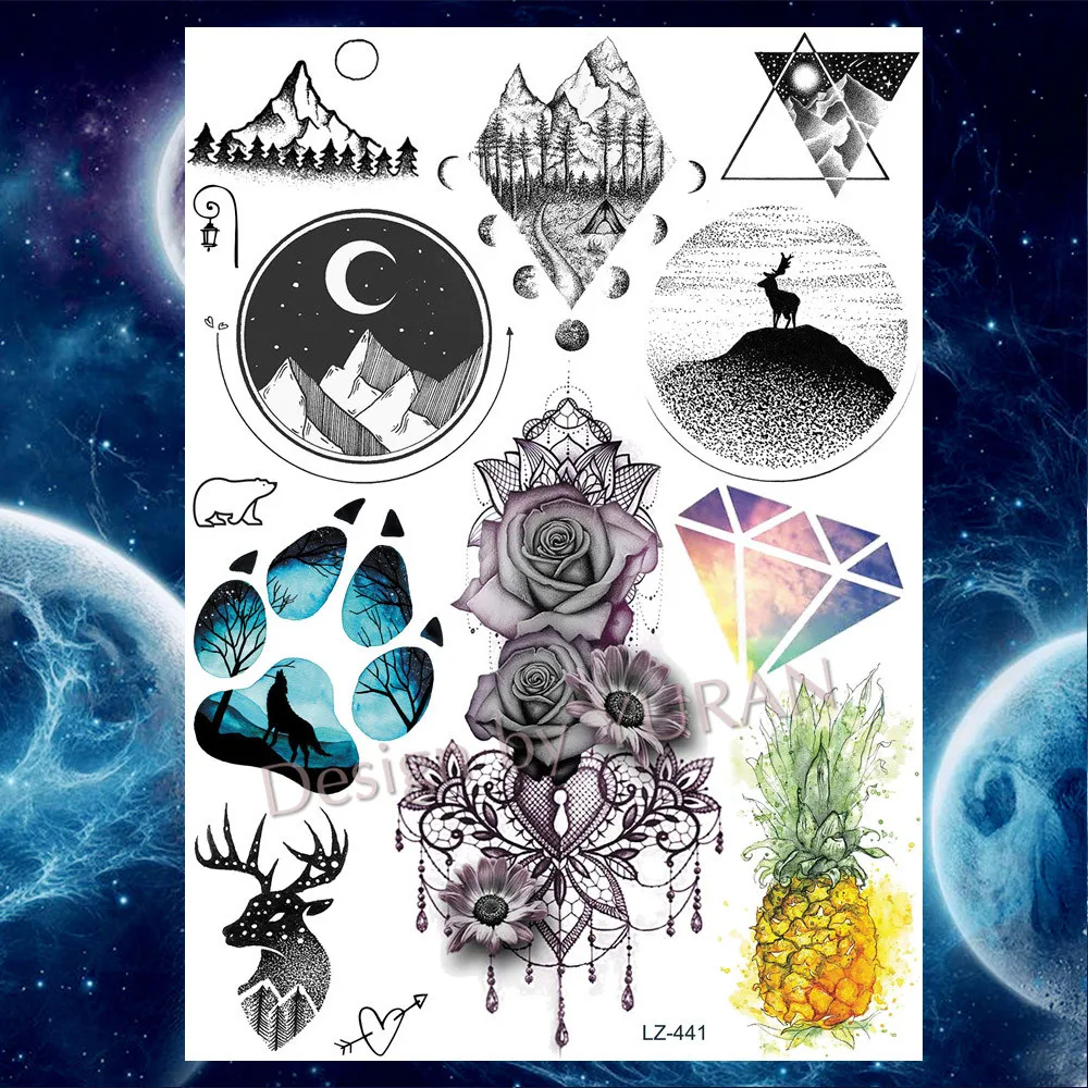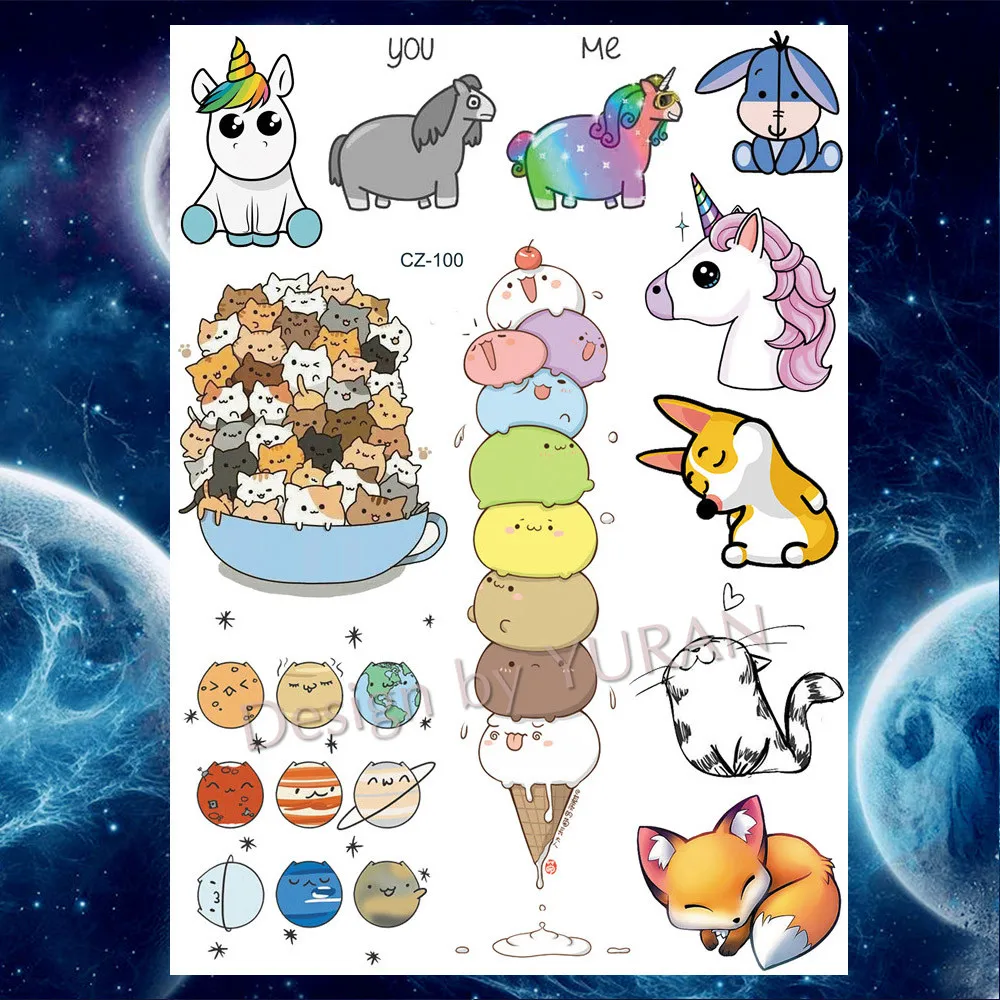 Акварельные татуировки с милыми лисами, мультяшными кошками, единорогом, временные для детей, оптом, искусственные татуировки, наклейки на тело, грудь, руки, тату для женщин