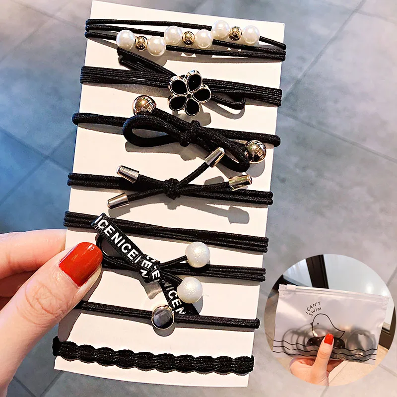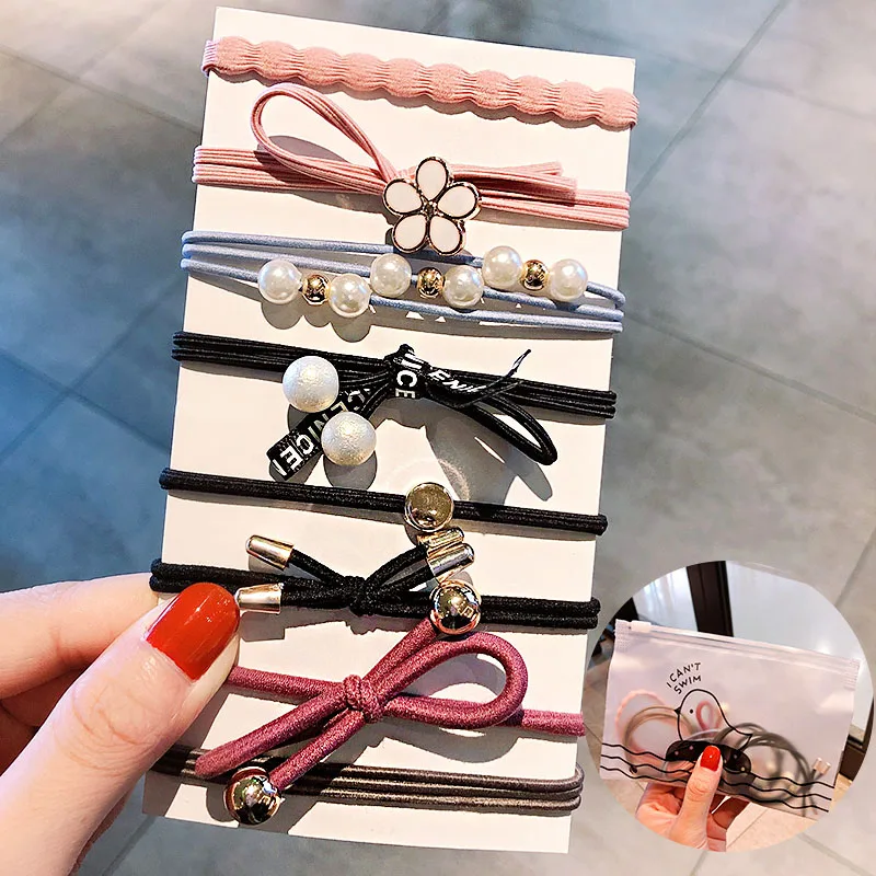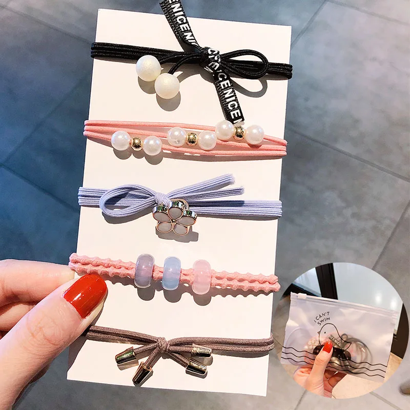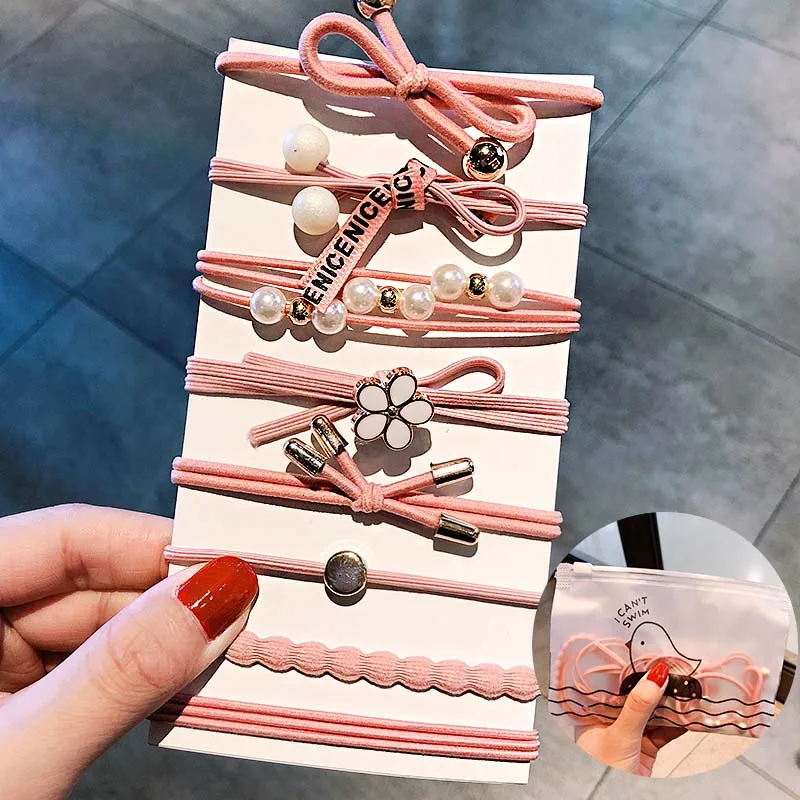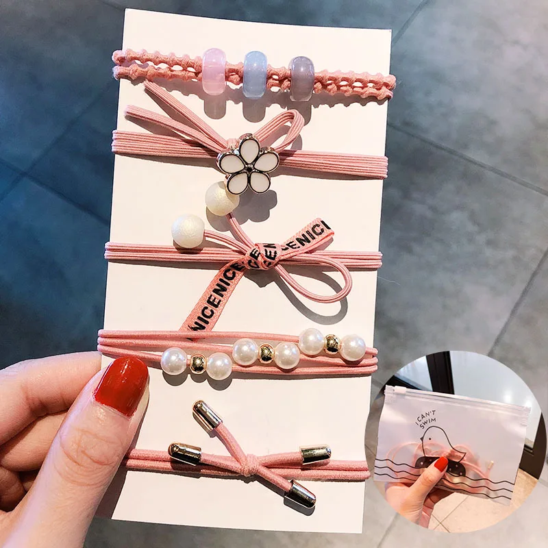 Эластичные резинки для волос с цветочным узором, 58 шт.компл., резинки для волос с жемчужинами и бантом, Модные прочные резинки для фиксации хвостиков, аксессуары для волос