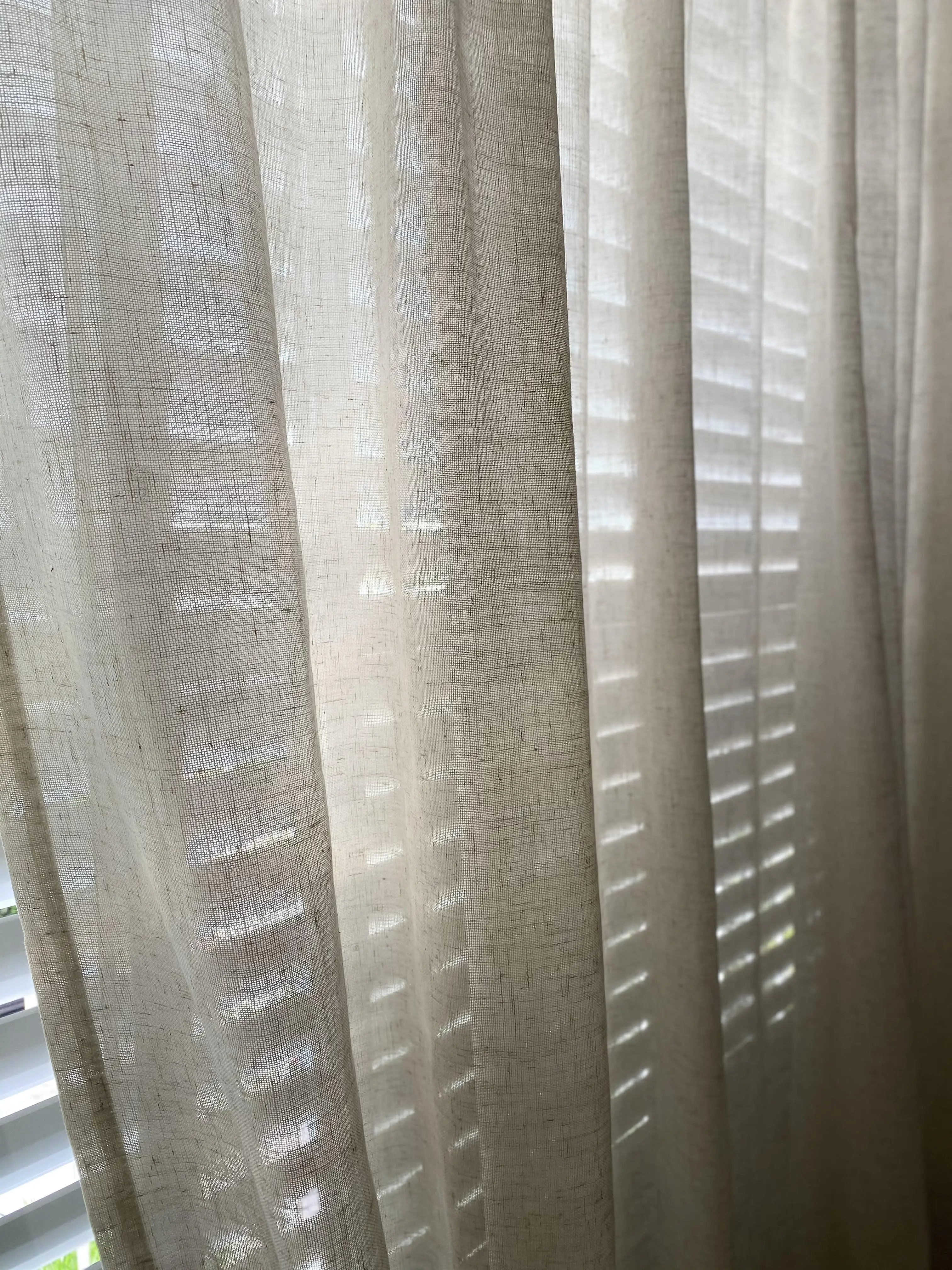 Очень хорошая занавеска. Немного менее непрозрачная, чем обычная льняная занавеска, но очень хорошая.