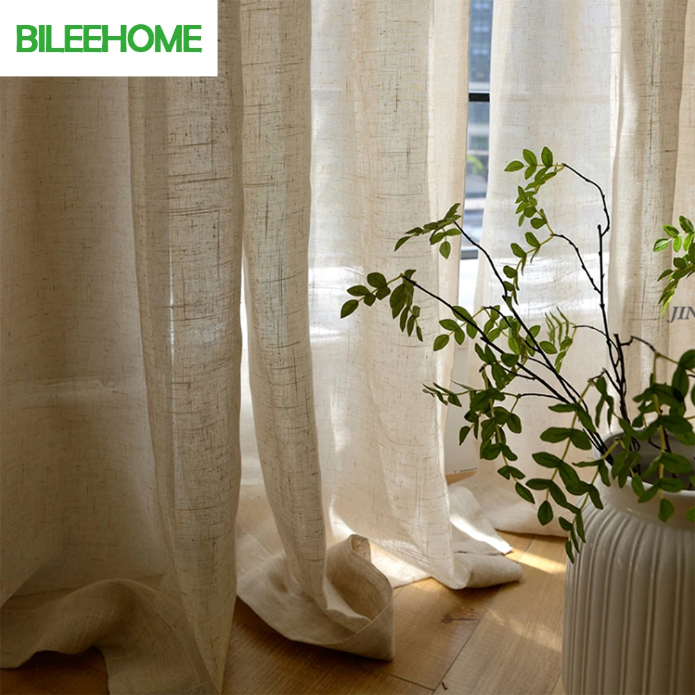 Однотонные льняные тюлевые занавески BILEEHOME для спальни, оконные занавески для гостиной, кухни, японское украшение, прозрачная вуаль, штора, драпировка