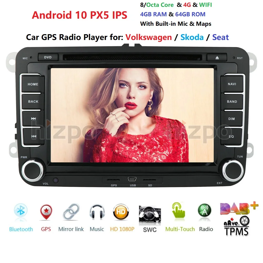 Автомобильный мультимедийный плеер, DVD-плеер на Android, с GPS, 4 Гб ОЗУ, 64 Гб ПЗУ, для VWVolkswagenGolfPoloTiguanPassatb7b6leonSkodaOctavia