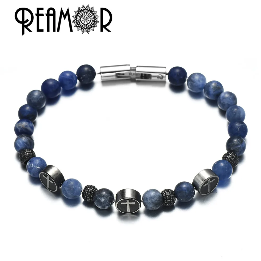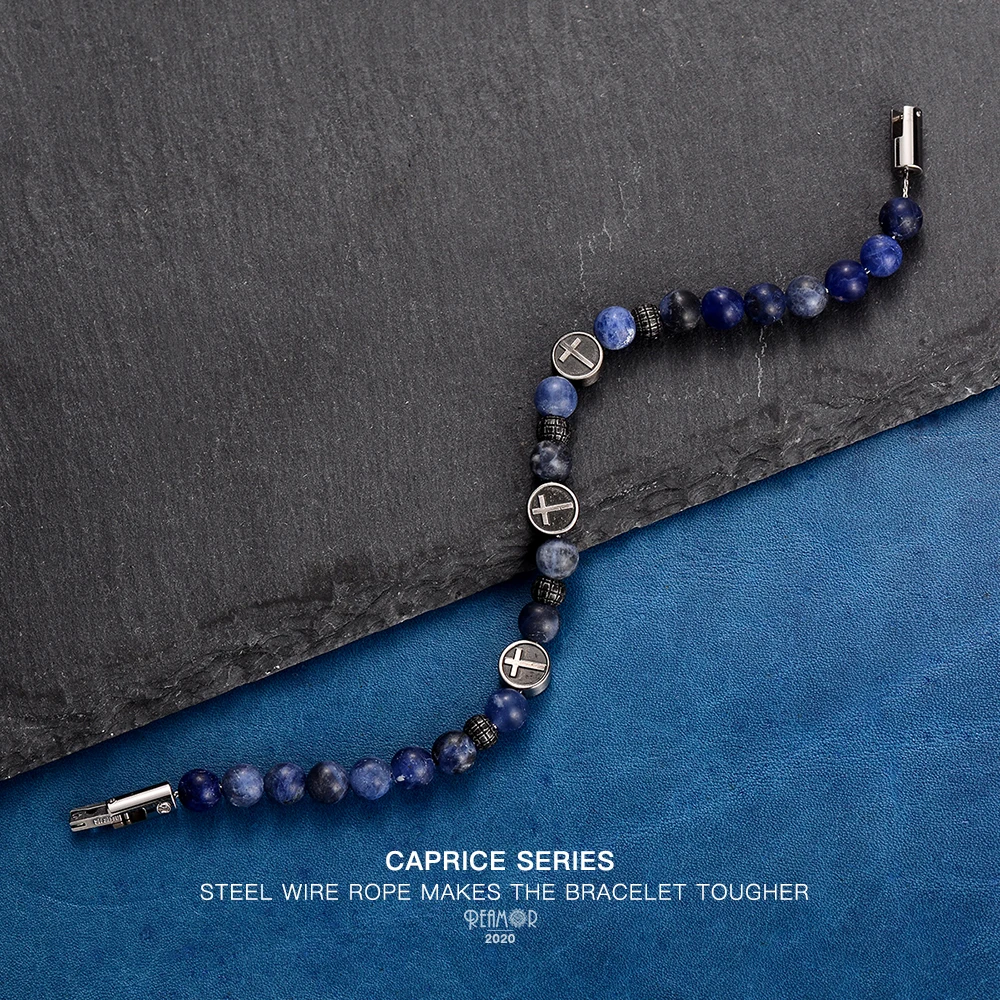 Уникальные мужские и женские съемные браслеты REAMOR, браслеты-цепочки из нержавеющей стали сделай сам с синим малахитовым натуральным камнем