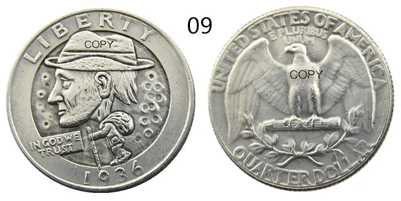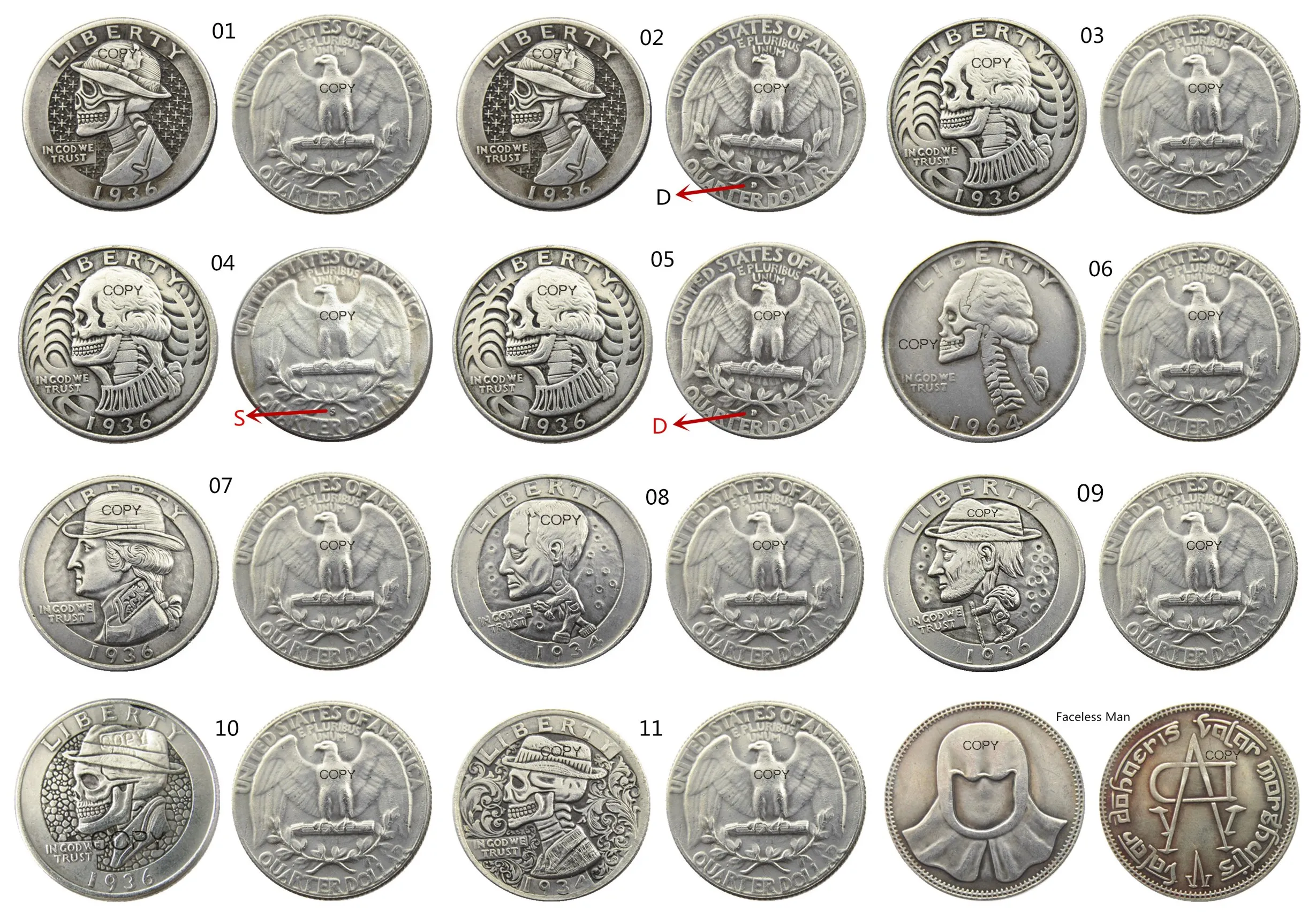 US Hobo Mix 12 шт., разные типы, искусственные доллары, Безликий человек, Череп, Скелет Зомби, посеребренные копировальные монеты