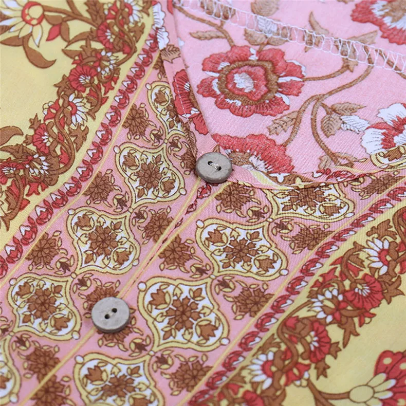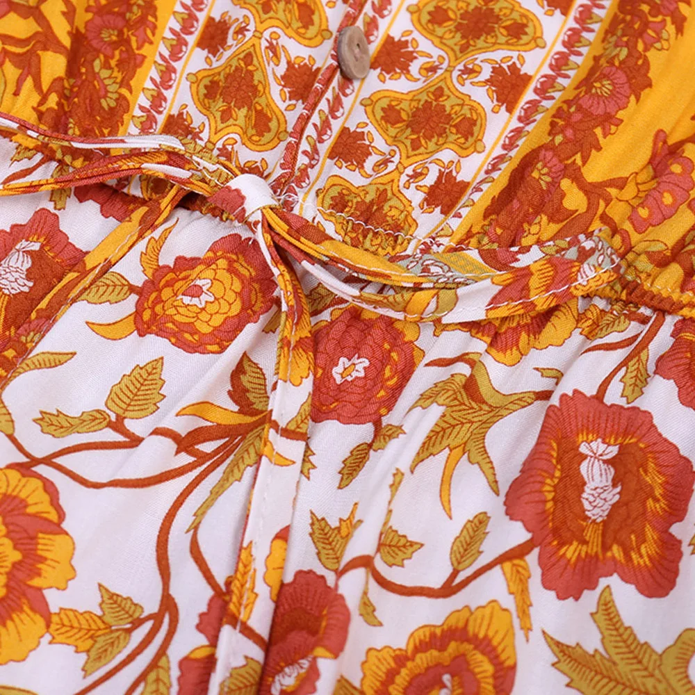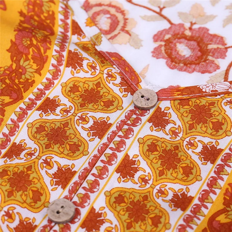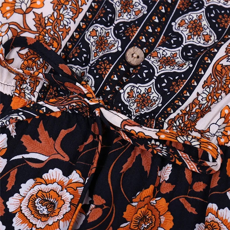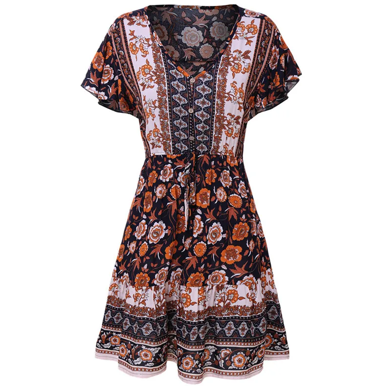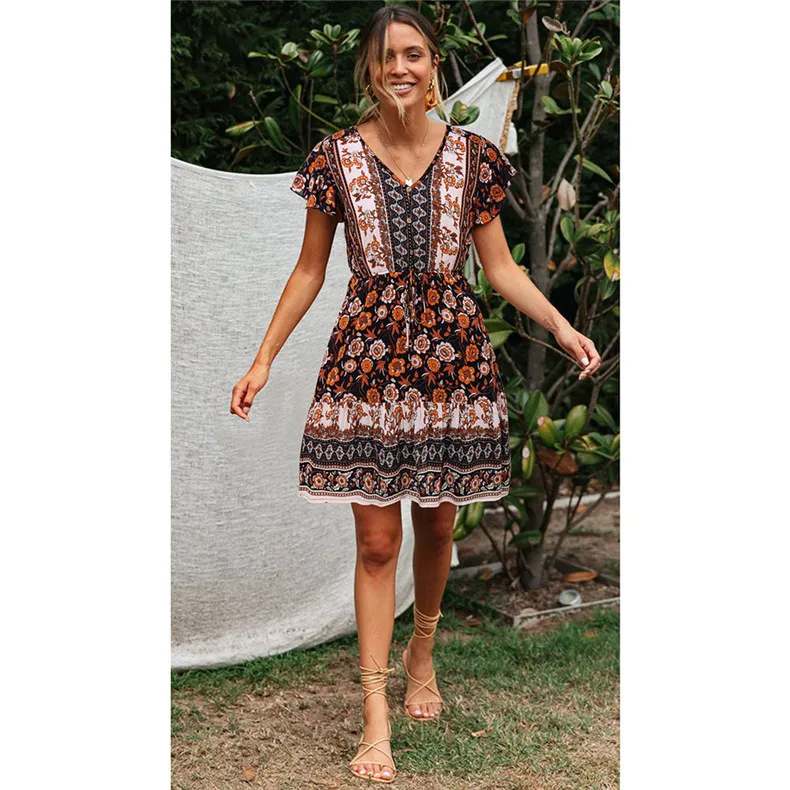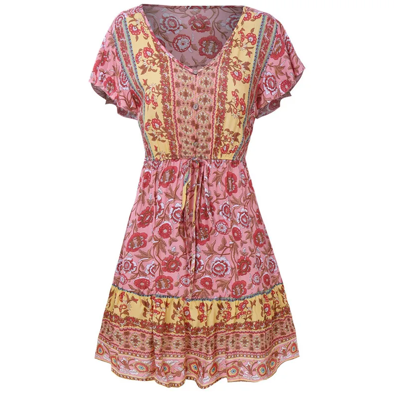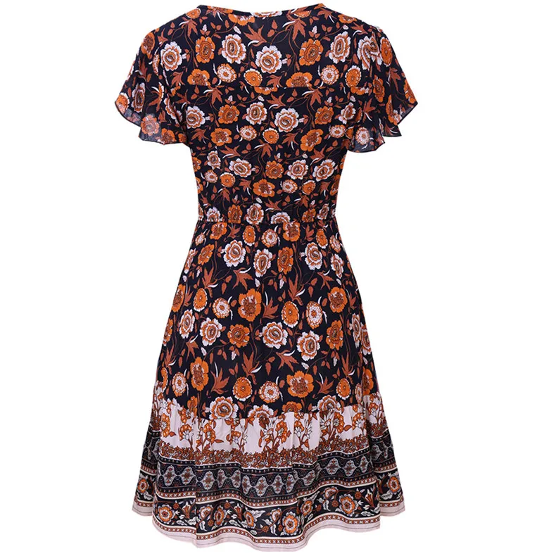 Женское короткое платье с цветочным принтом Forefair, летнее пляжное платье в стиле бохо с завязками на талии и v-образным вырезом