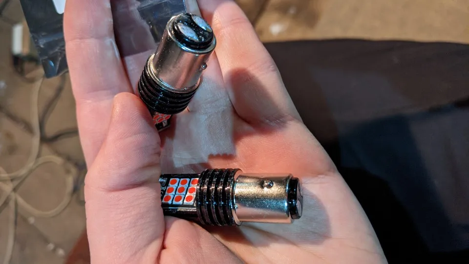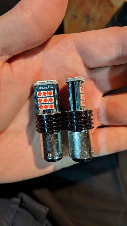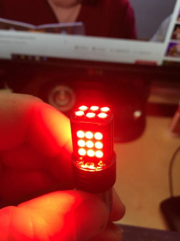 работает на стопах 12шки и на задних туманках, не ярче ламп накаливания, но цвет более красный, на фото в стопах эти лампы и в правой туманке а в левой другой диод только белого цвета