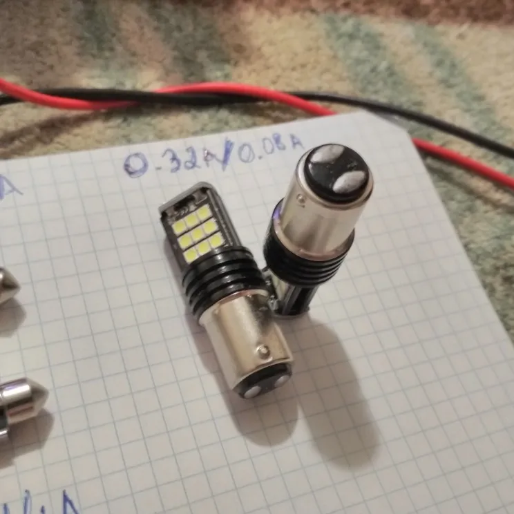 доставка 20 дней ,лампы 1157 проверены на лбп при напряжение 14.4 v,при этом смотрите потребление по току при снижение напряжения до 12.5 вольт потребление чуть увеличивается ,годно ,работает,после установки в авто дополню отзыв ) жаль в сравнение нет простой лампы накала