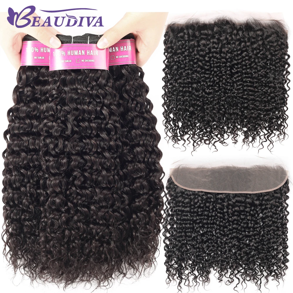 Пряди волос BEAUDIVA, бразильские человеческие волосы с холодной волной, с фронтальной застежкой, с пучком
