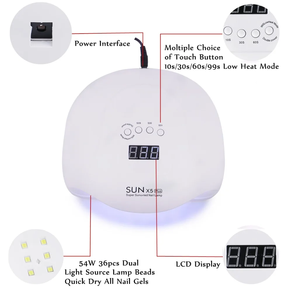 Ультрафиолетовая Светодиодная лампа SUN X5 Plus 54 Вт, Новая Сушилка для ногтей с автоматическим сенсором, ЖК-дисплей Ультрафиолетовая лампа для ногтей, для быстрого отверждения гель-лака для маникюра