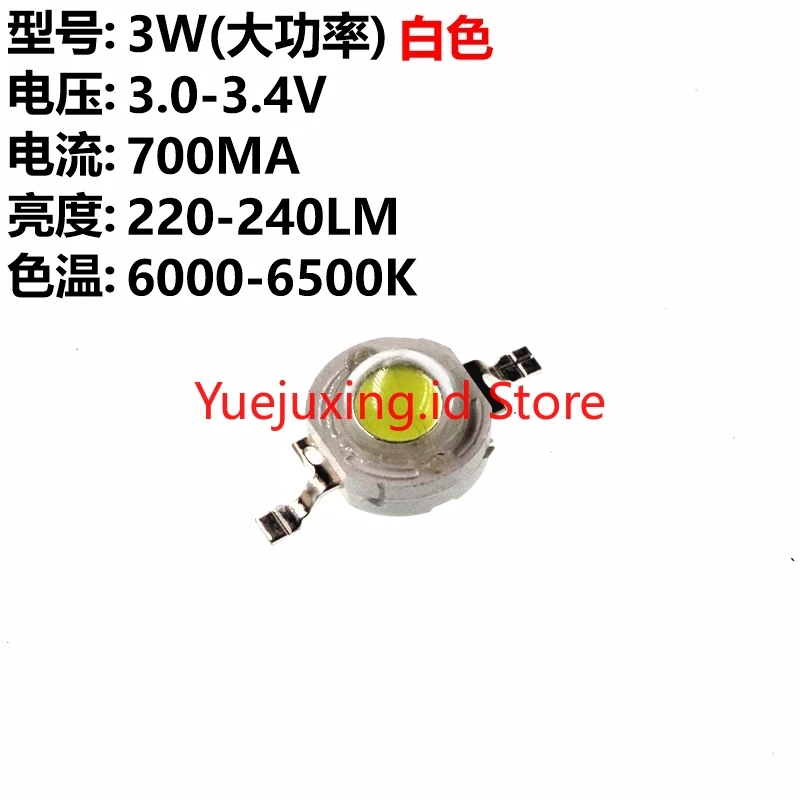 Модель изделия: белый светильник 3 Вт (за исключением алюминиевой подложки) Цвет: белый Мощность: 3 Вт (Вт) Цветовая температура: 6000K (отклонение 5%) Яркость: 140-150Lm (600mA) Напряжение (VF): 3,35-3,6 V Исходный ток: (IF): 600 мА [Рабочая температура] -20-60 градусов [Температура хранения] 20-60 градусов [Срок] 50000 часов