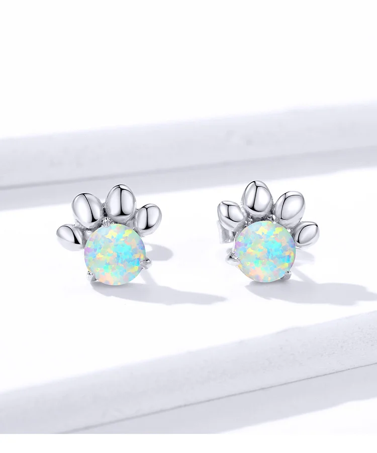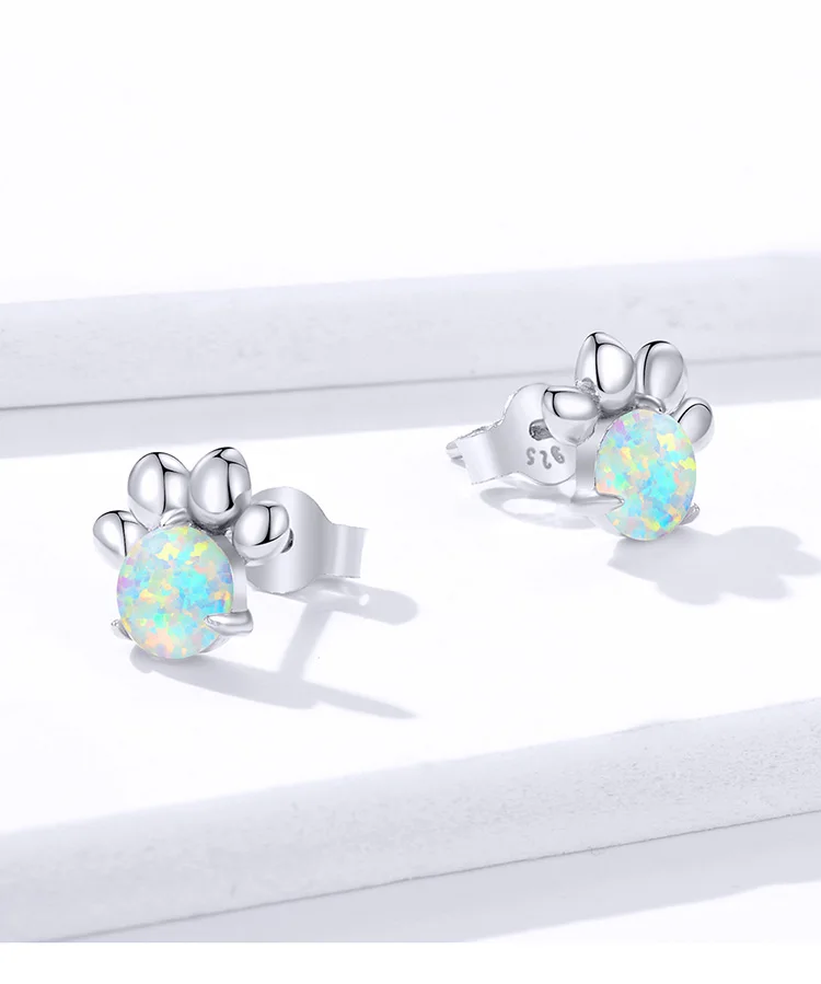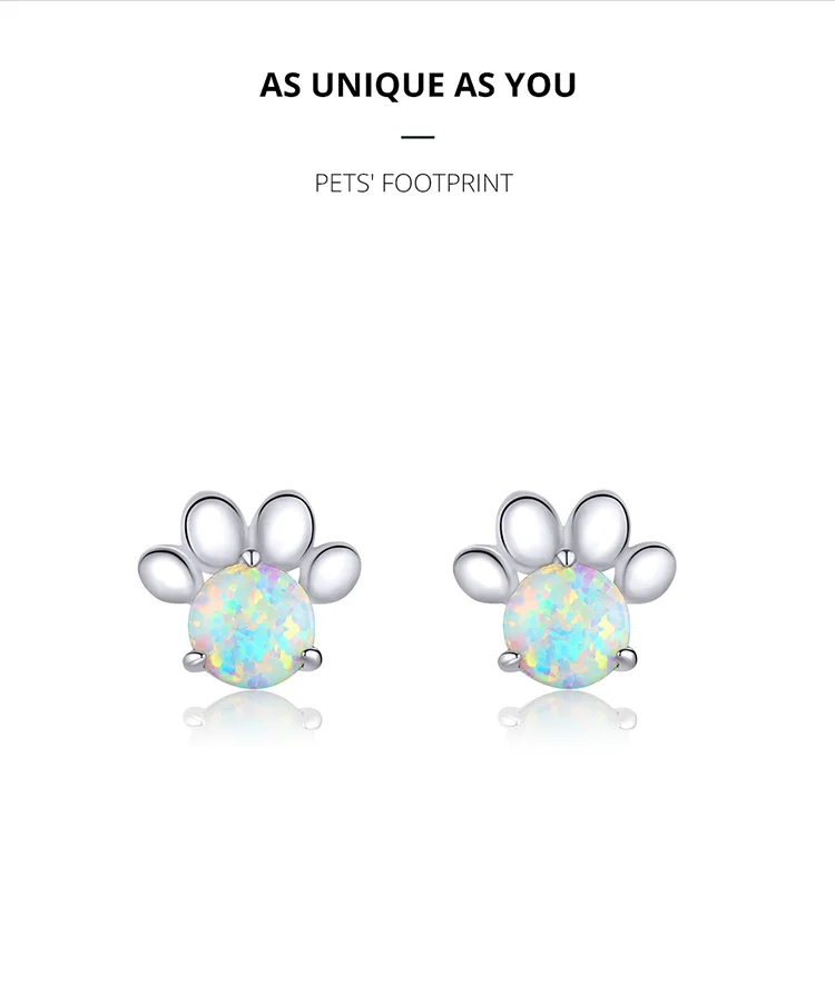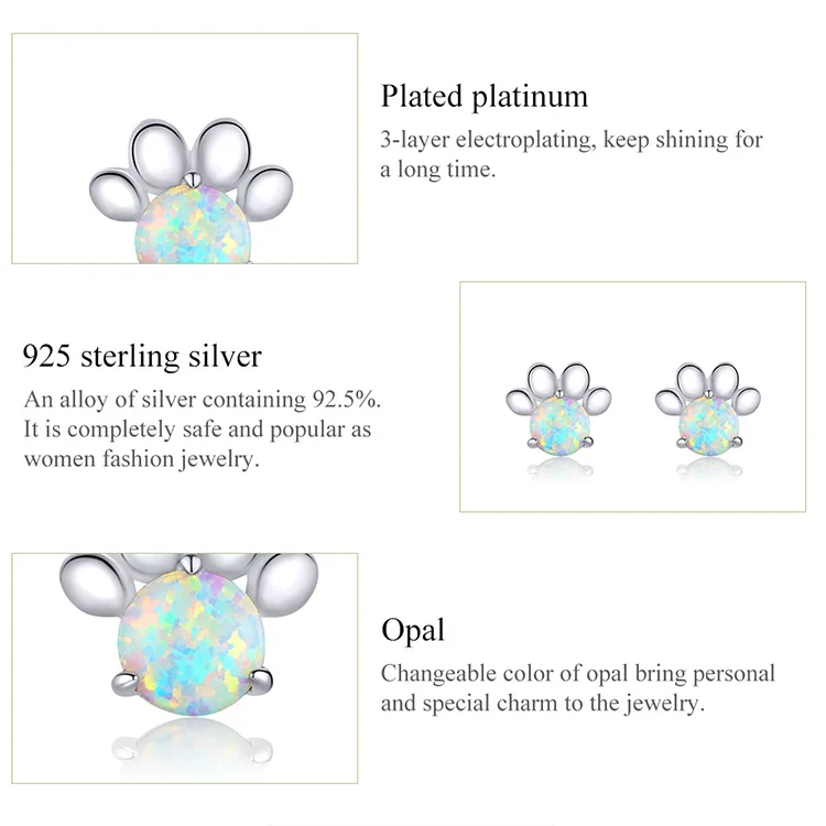 Женские серьги-пусеты bamoer, ювелирное изделие из 100% настоящего серебра 925 пробы с опалом в виде следов лапы домашних животных, BSE346
