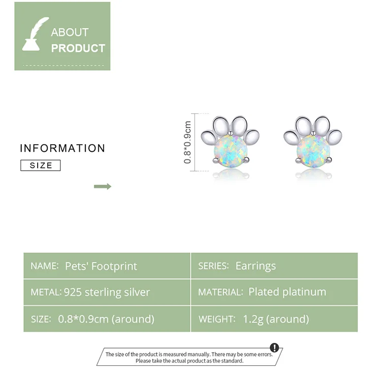 Материал: S925 + Платина с покрытием + прозрачный опал Размер: 0,8*0,9 см Описание: Вдохновленный милыми следами с блестящим опалом придает значение, что любовь к домашним животным, они являются свидетельством вашей истории с вашим милым питомцем.