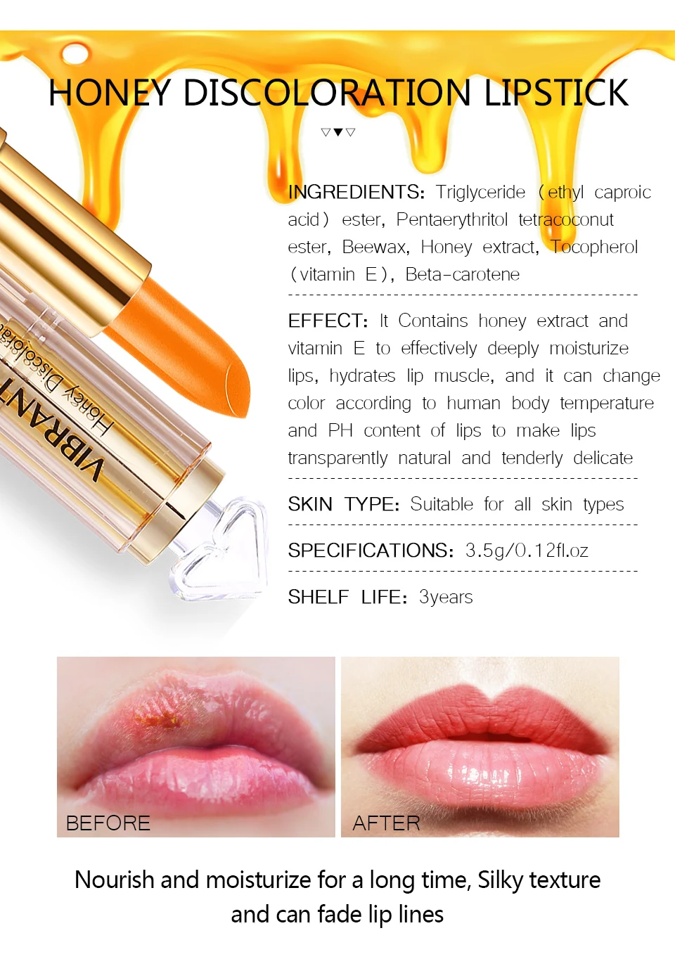 Яркий гламур помада-Хамелеон медовый увлажняющий питательный линия губ осветление губ Предотвращение потрескавшегося натурального экстракта Уход за губами