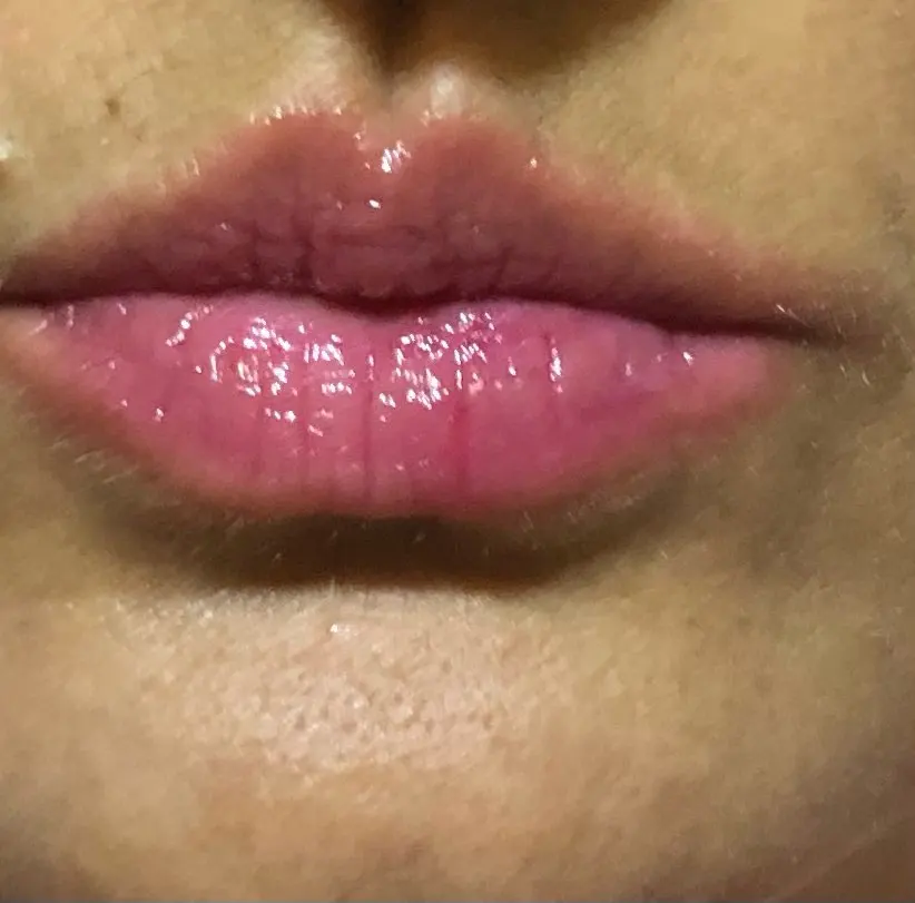 Сама помада неприятно пахнет. Но на губах запах уже не ощущается. Слегка красит губы в розовый. Нужно обновлять каждые пару часов, иначе она впитывается или высыхает и губы с розовым пигментом, но без блеска выглядят не очень.