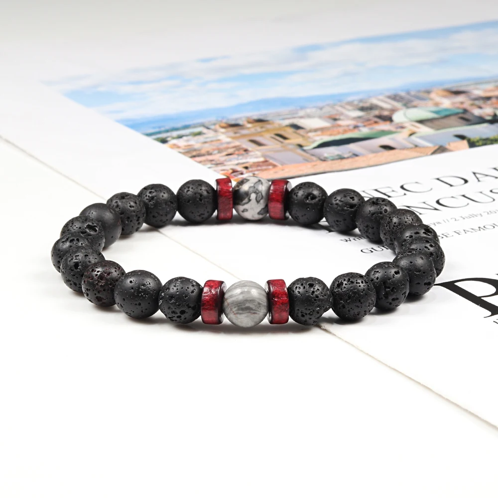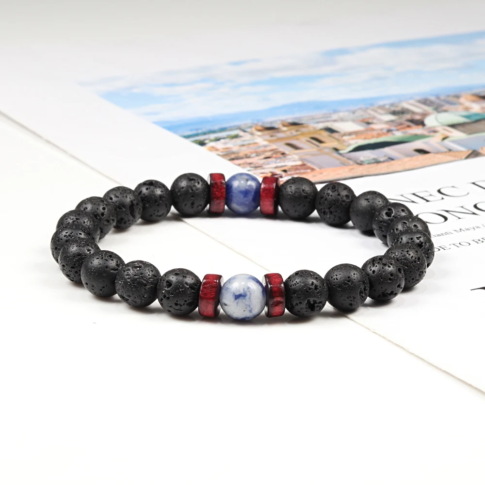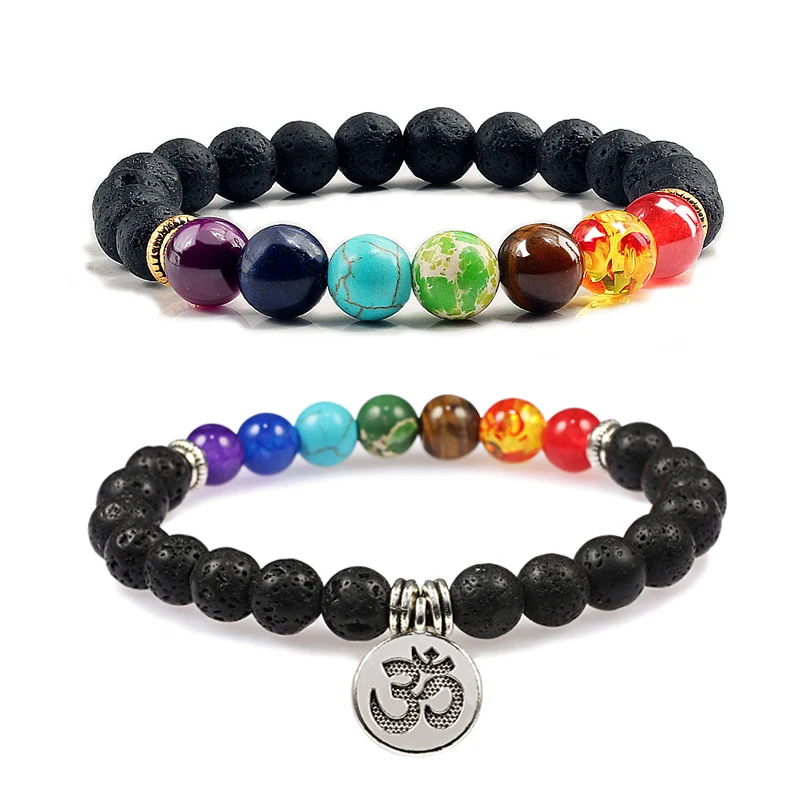 Мужской браслет с 7 чакрами, черный браслет из натуральной лавы с бусинами, Будда, лотос, женский браслет для йоги, ювелирные изделия, подарки для друзей