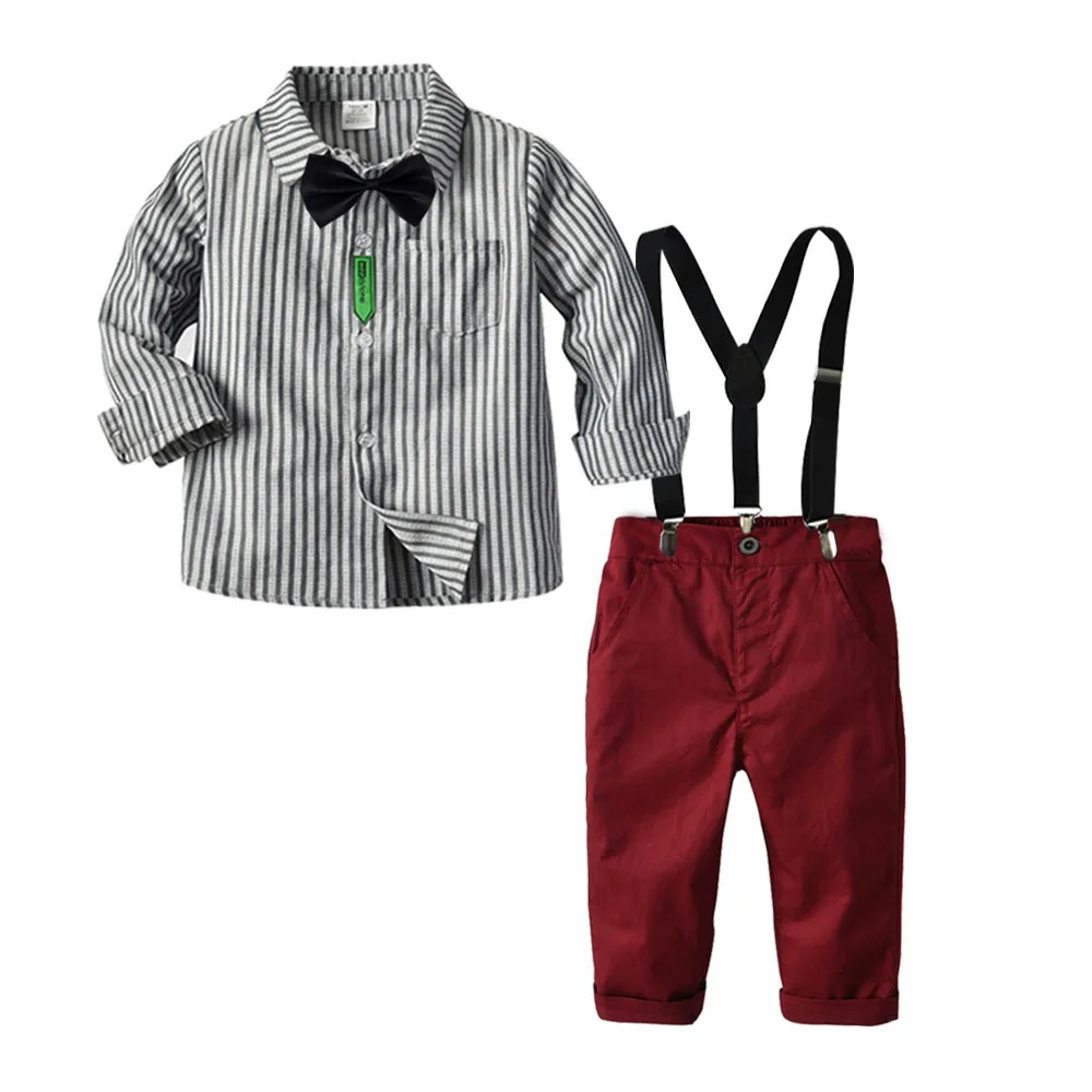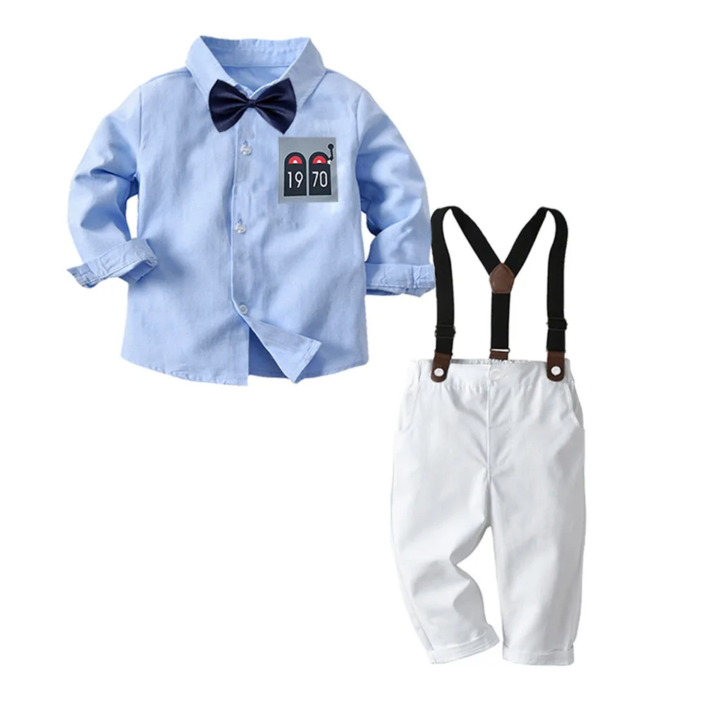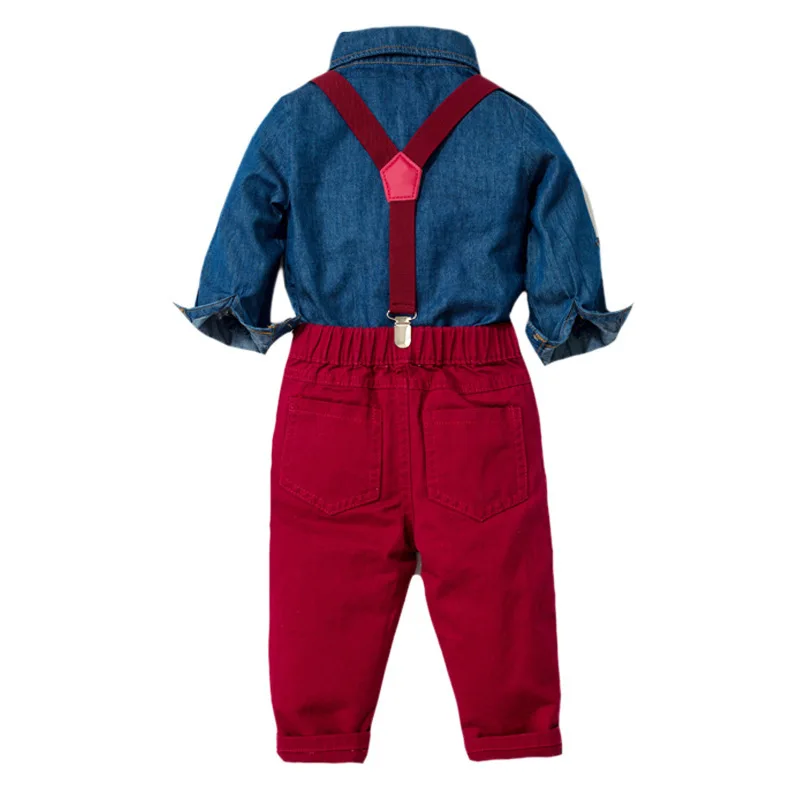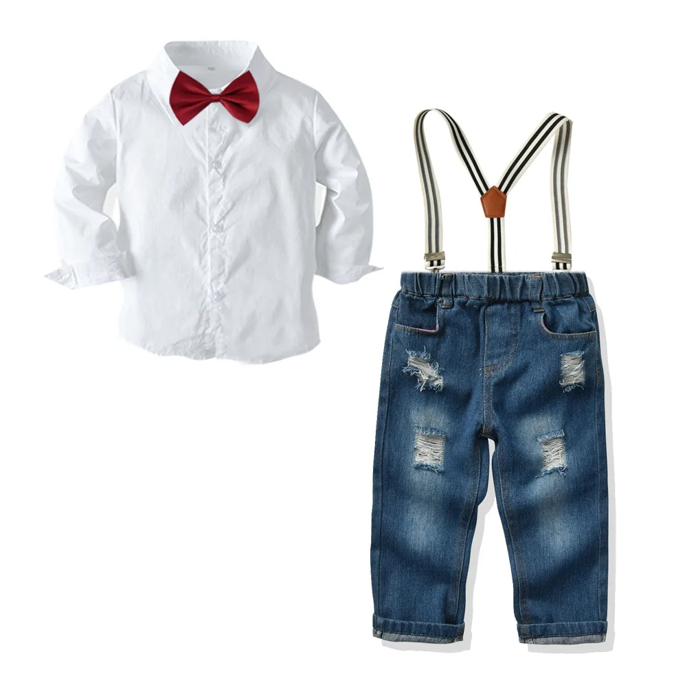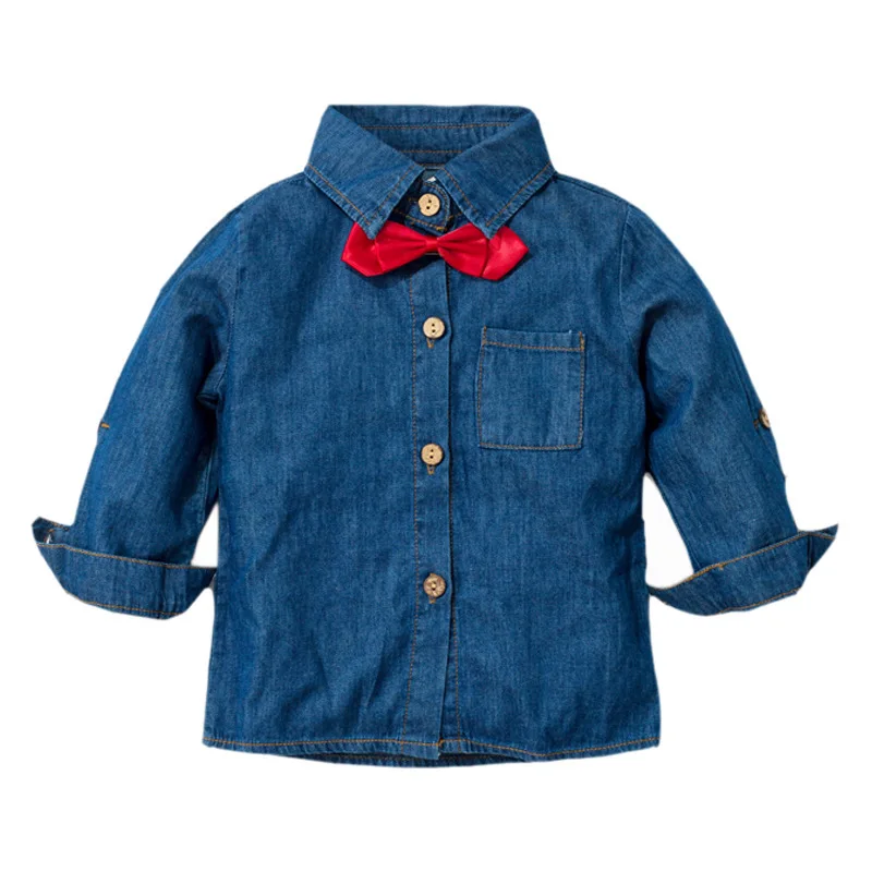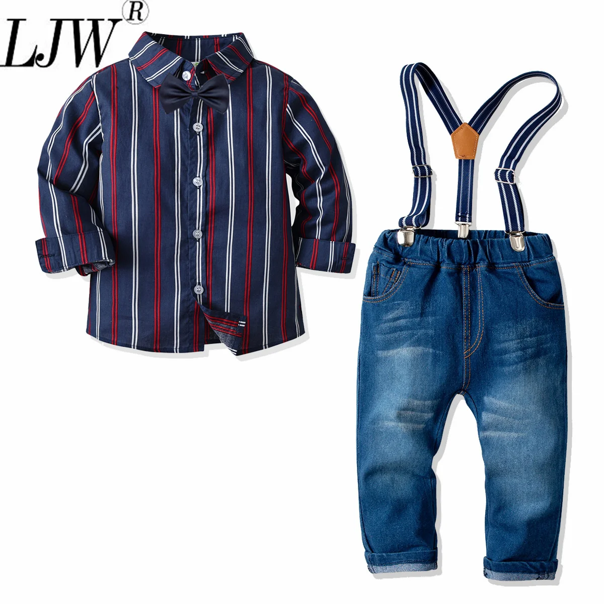 Комплект детской одежды из 2 предметов для мальчиков, синяя рубашка + джинсовые брюки, наряд на возраст 2-7, комбинезон, детская одежда с длинным рукавом, осенний комплект