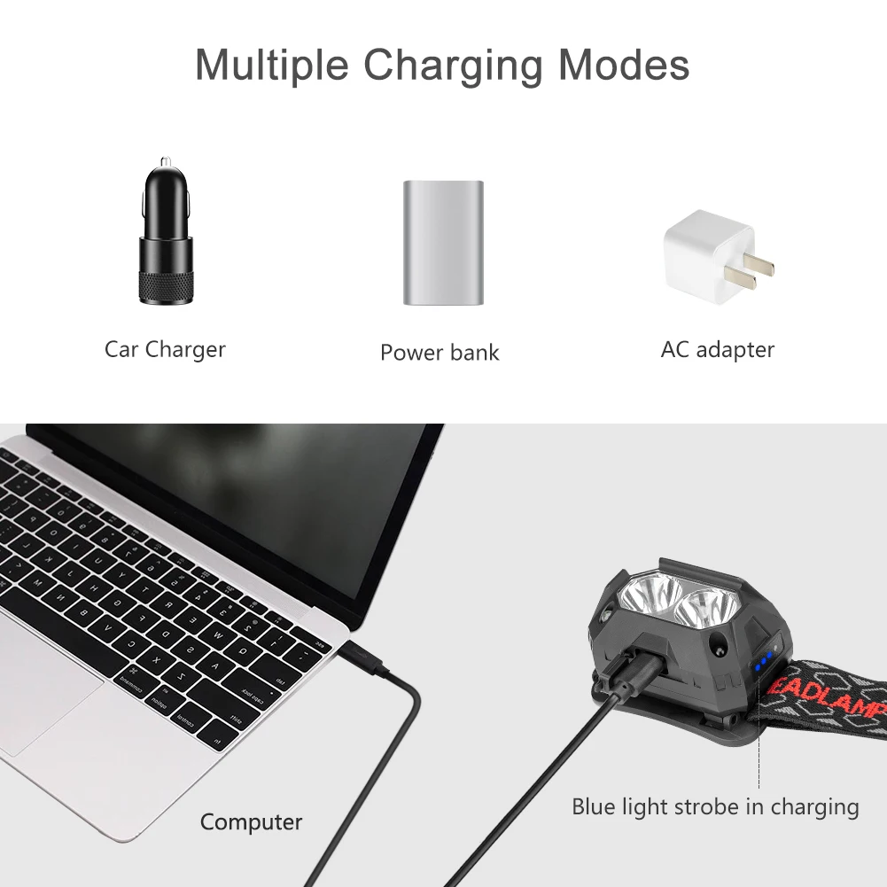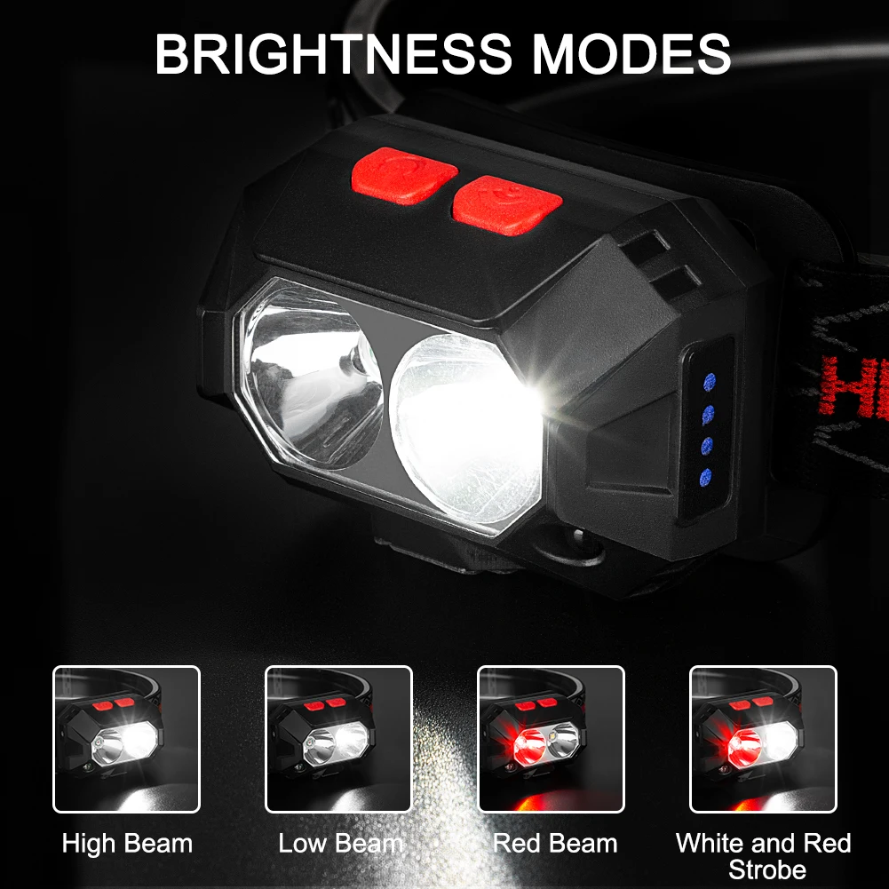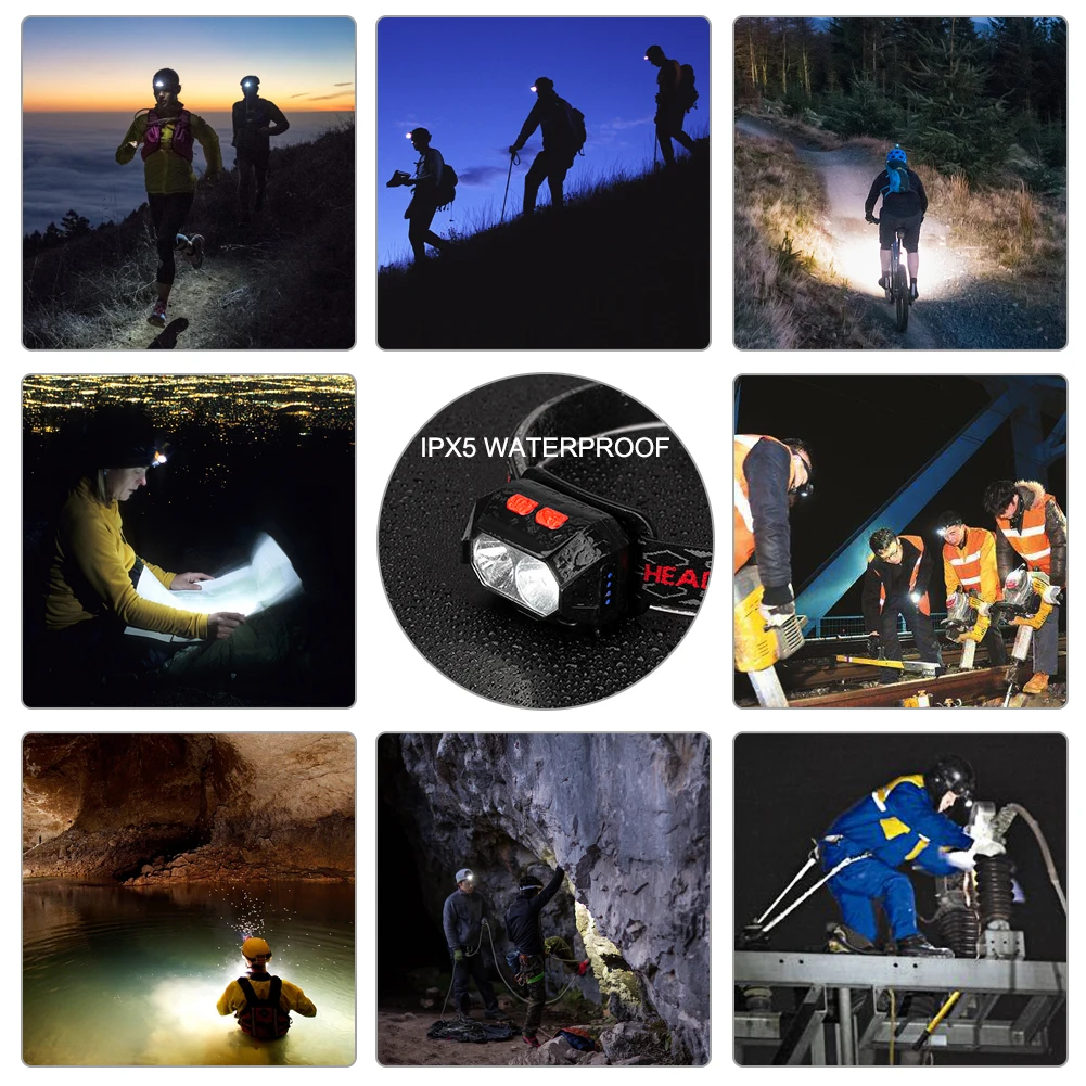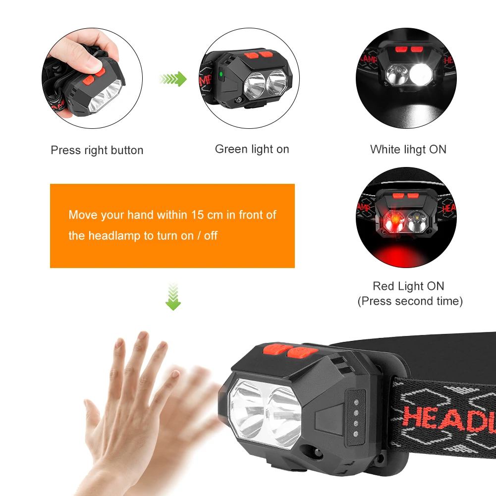 Налобный фонарь, XPG-2, красныйбелый, с датчиком движения, фонарь на фонарь для кемпинга, фонарь для кемпинга с разъемом USB
