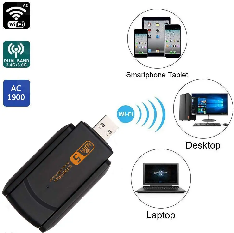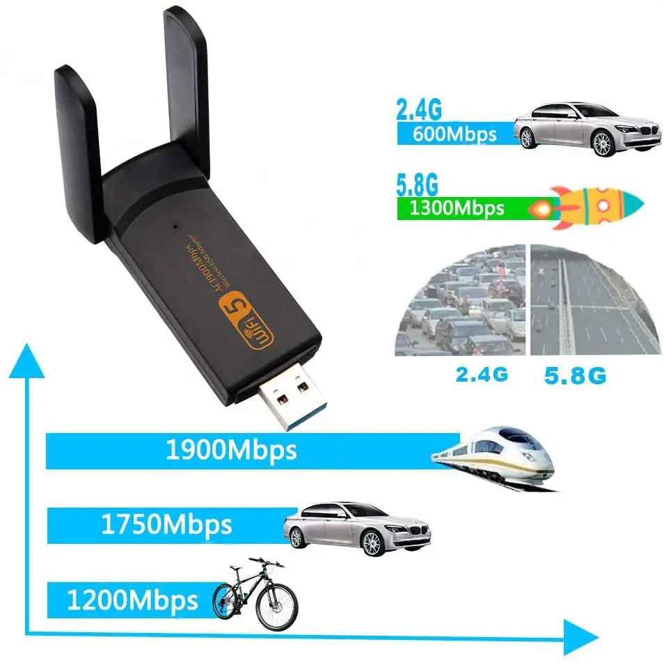 Беспроводной USB-адаптер Wi-Fi AMKLE, 1900 Мбитс, сетевая карта USB 1200 Мбитс, Wi-Fi-ключ USB LAN Ethernet, двухдиапазонный драйвер платы 2,4G 5,8G