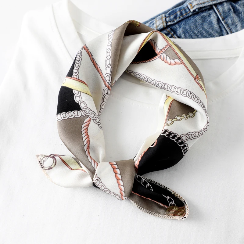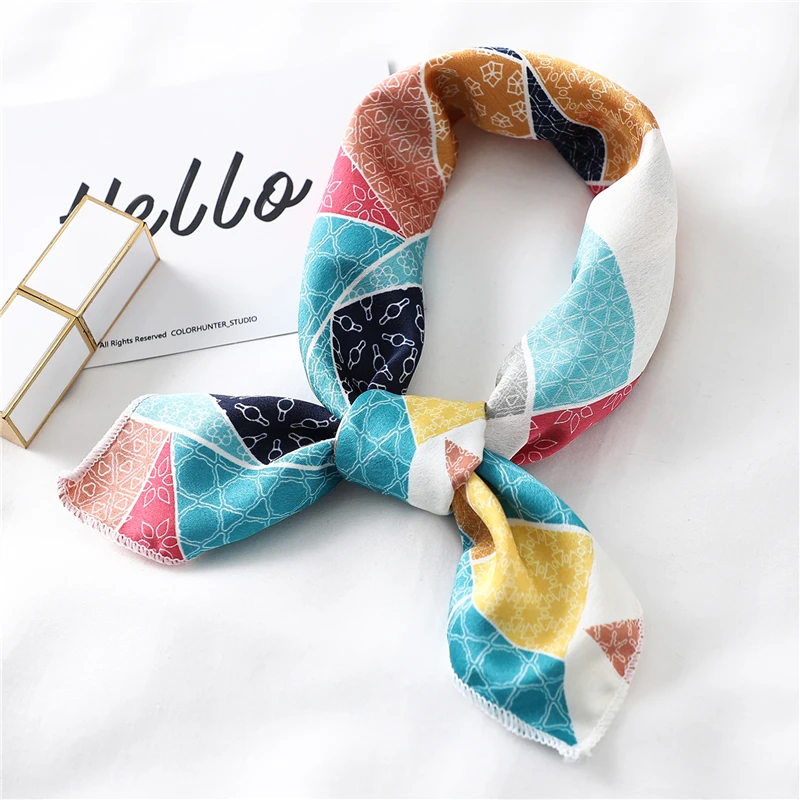 Шарф женский шелковый с принтом, квадратный шейный платок, бандана, модная повязка для волос, платок с запахом, 50 см