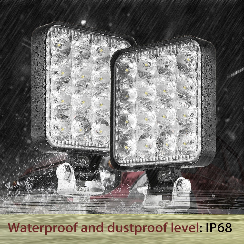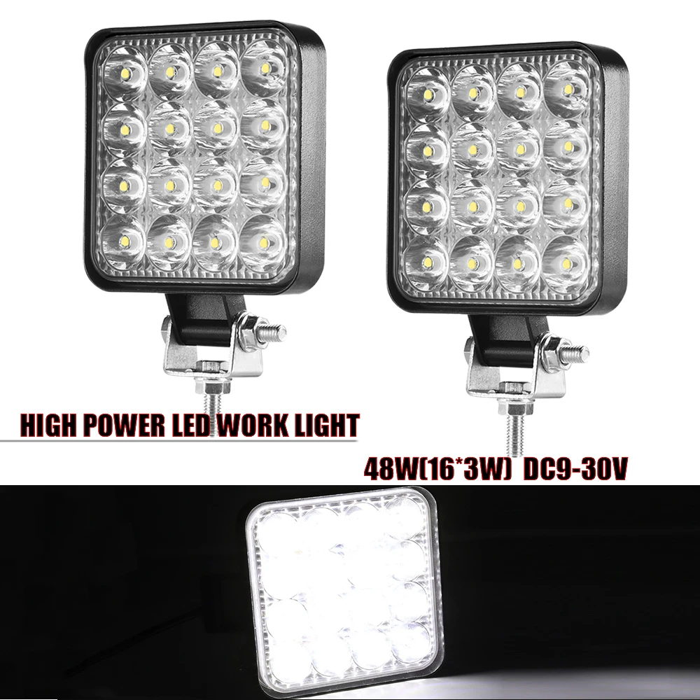 Мощность: 48 Вт Светодиодный: 16 шт. * 3 Вт Высокий световой поток эффективности: 4800lm Рабочее напряжение: 9-30 В постоянного тока Светодиодный Цветовая температура: 6000-6500k Срок службы: 50000 часов Рабочая температура: -40 °C ~ + 85 °C Степень водонепроницаемости: IP68 IP68 водонепроницаемый и пыленепроницаемый, срок службы около 50000 часов Материал: черный литой алюминиевый профиль, ПК объектив. Сертификация CE и ROHS Широкое применение: он может применяться для различных типов внедорожников, 4WD, для джипов, грузовиков, пикапов, тракторов, лодок, автобусов, спортивных утилит, UTE, ATV. Кроме того, он также может использоваться в сельском хозяйстве, горнодобывающей промышленности, промышленности, коммерции и других областях с низким энергопотреблением.
