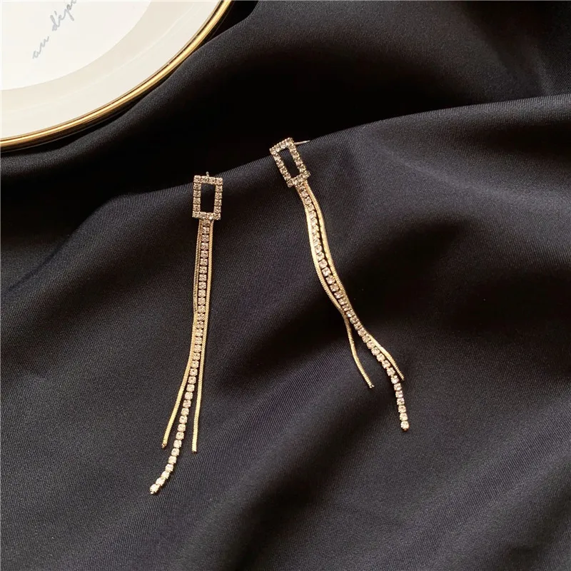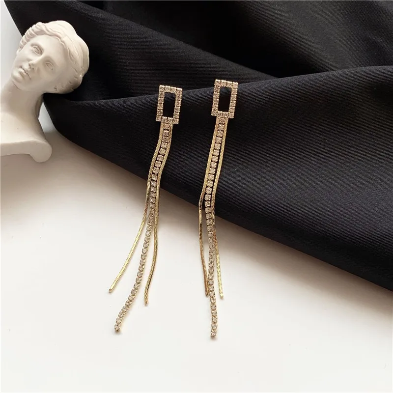 Простые Длинные серьги-подвески с золотыми кисточками, модные ювелирные изделия, массивные серьги с кристаллами, корейские серьги для женщин, 2020