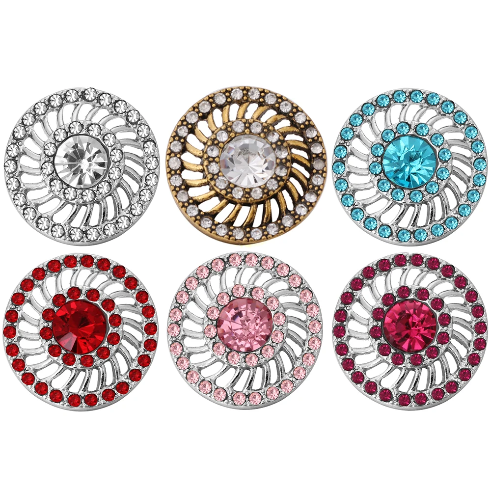 6 шт.лот, 6 цветов, металлические Смешанные браслеты с кнопками 18 мм и стразами для ювелирных изделий 20 мм 18 мм
