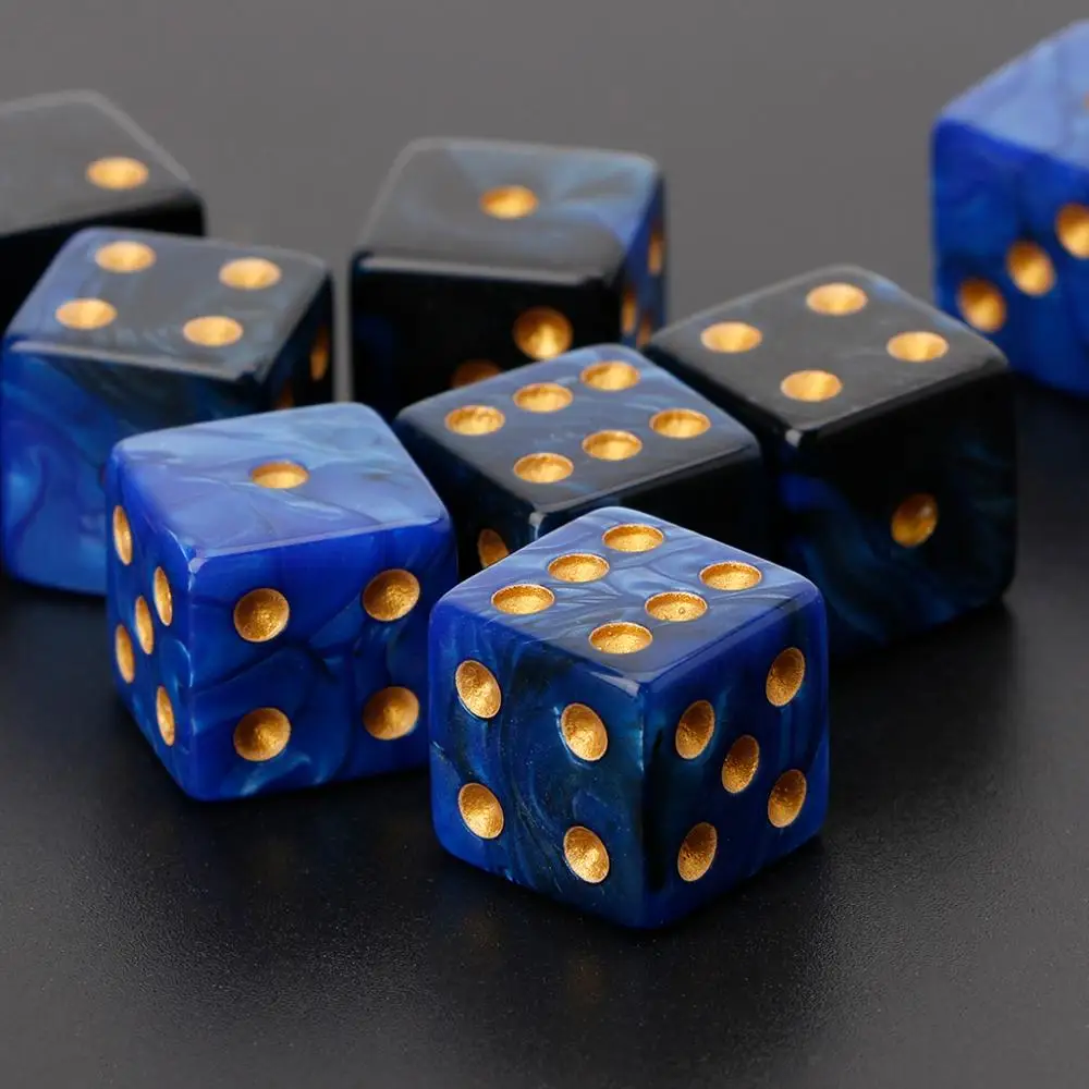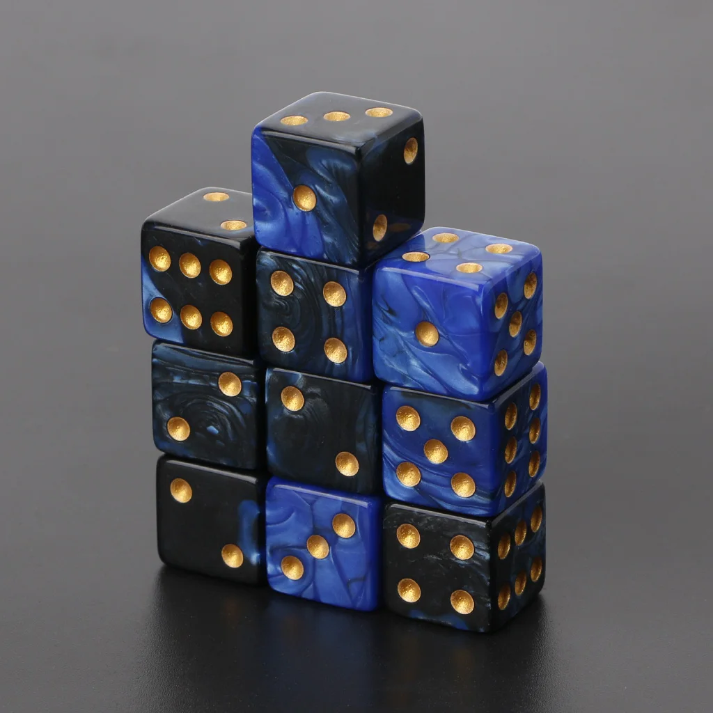 Стороны: 6 Материал: акрил Размер: около 15 мм/0,59'' Цвет: черный, синий, желтый Количество: 10 шт.