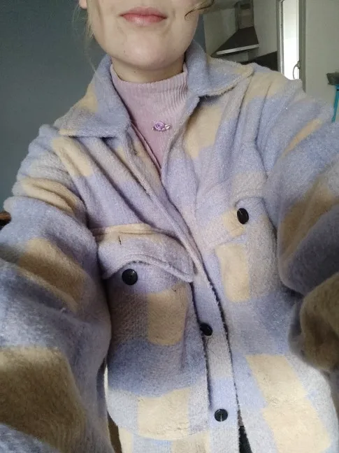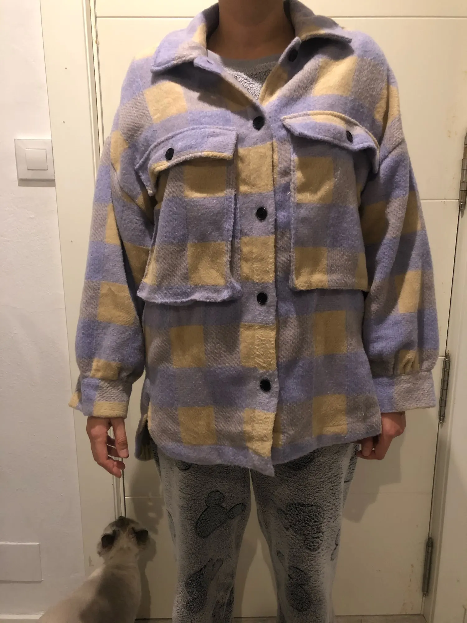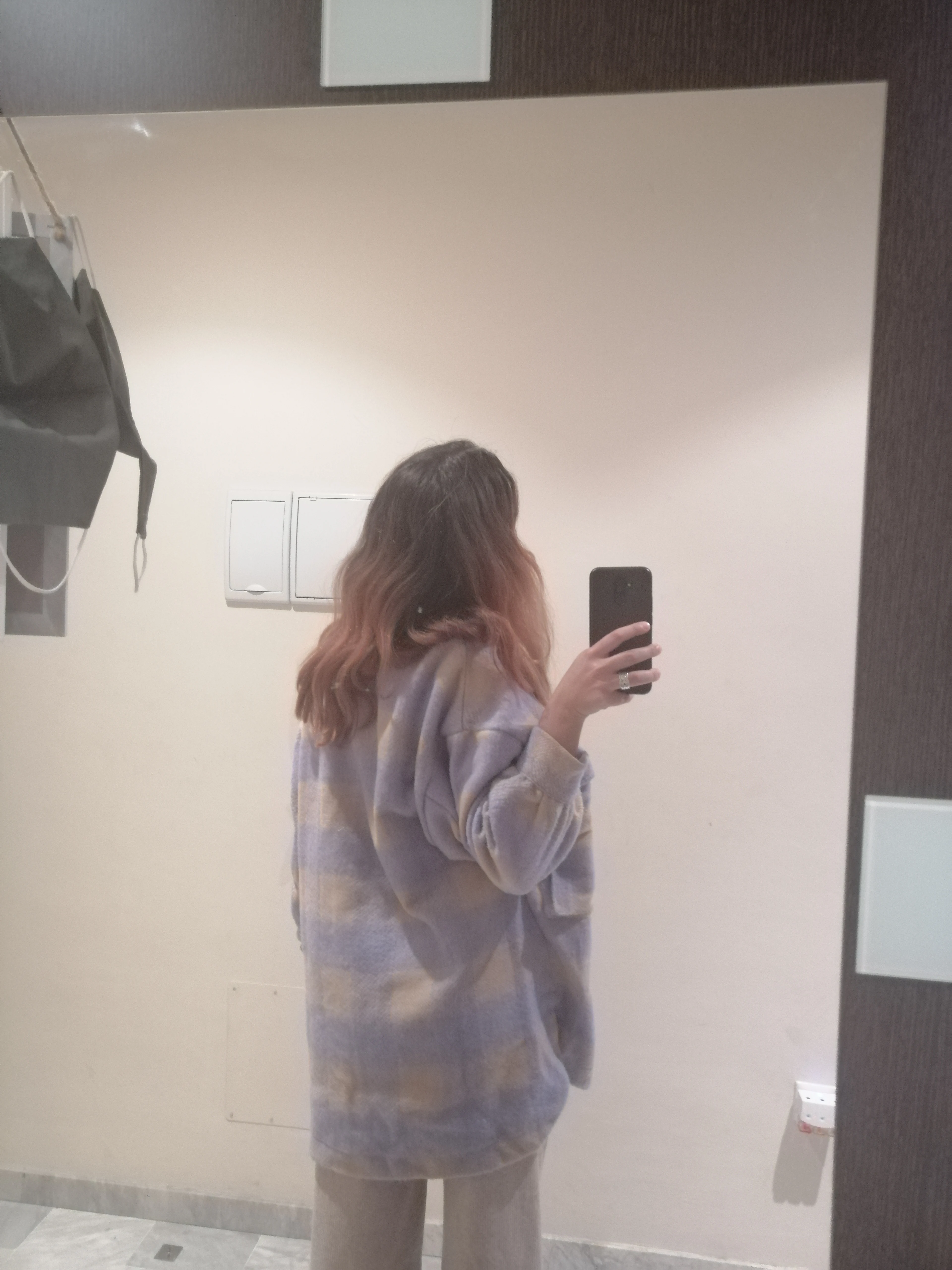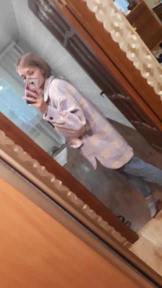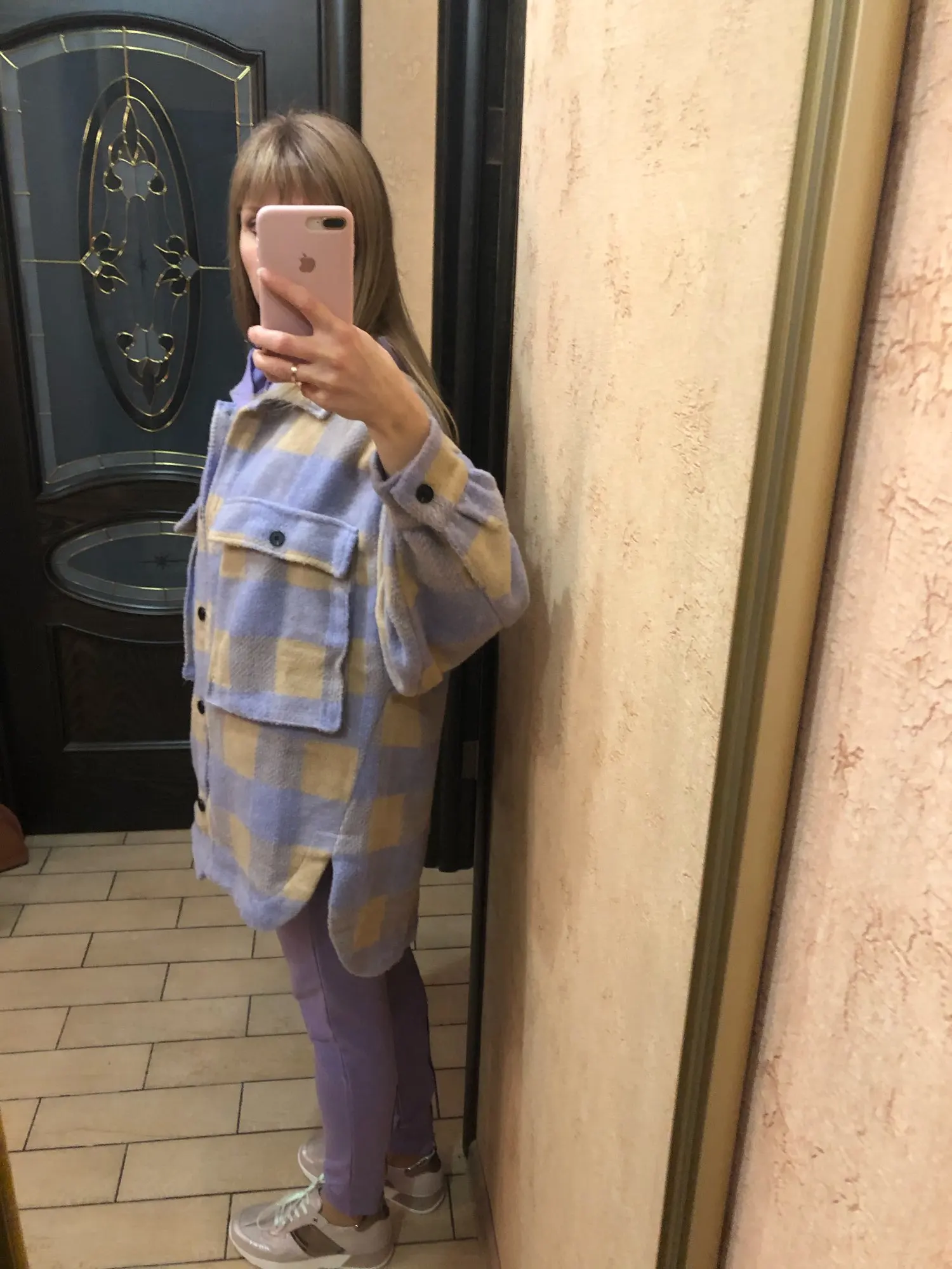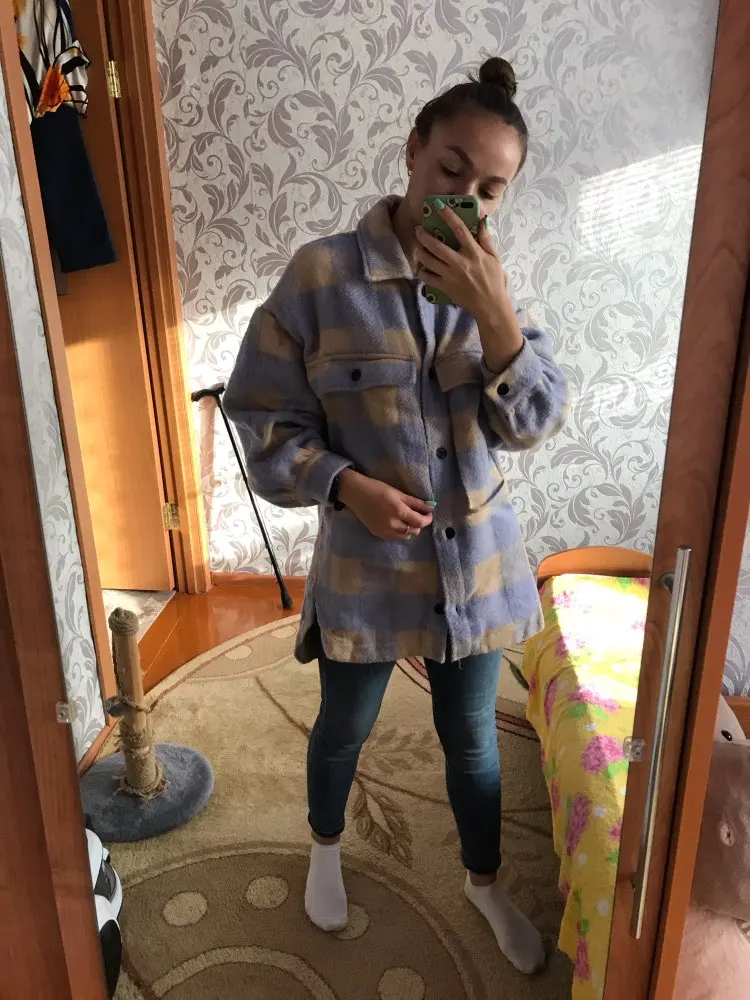 Хорошая рубашка. Тёплая. Оверсайз. Можно даже толстовку под неё надеть. Есть торчащие нитки, неприятного запаха не было. Единственное, со временем она будет в катышках там, где соприкасается с сумкой или чем-то ещё. Цвет, мне показался, немного бледнее, чем на фото. Ну а так за свою цену вполне хорошо.