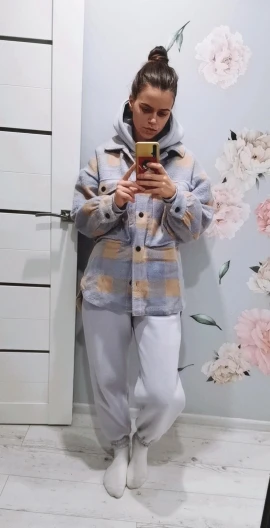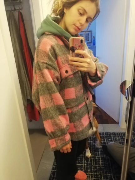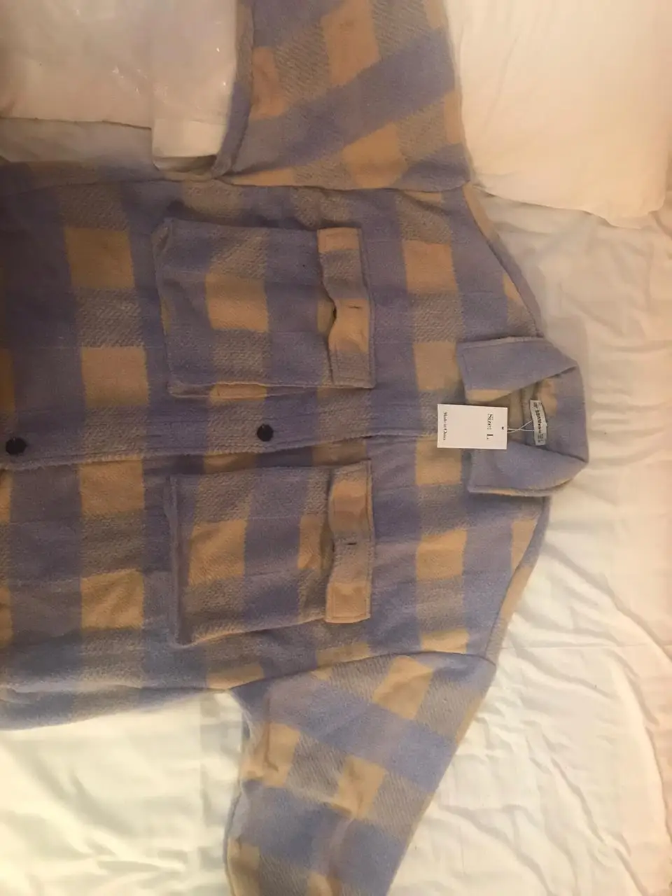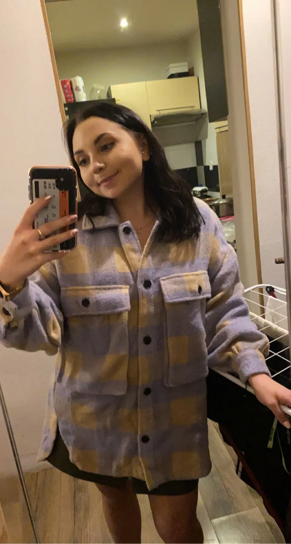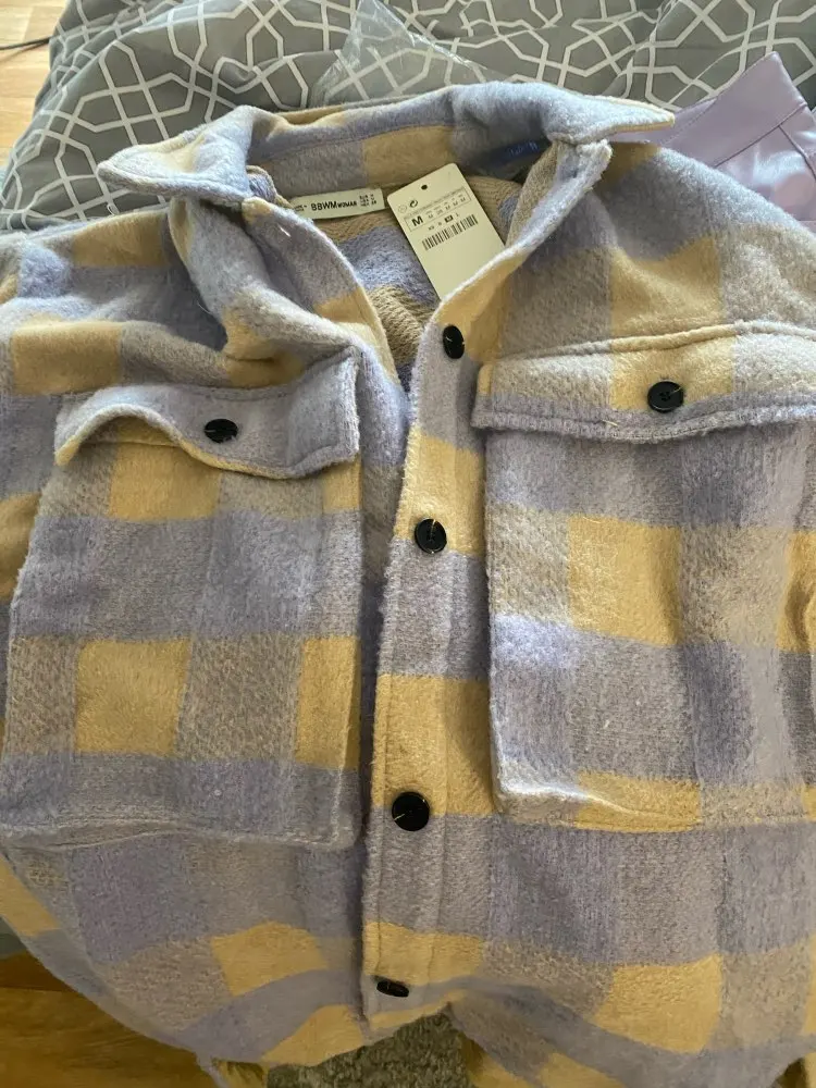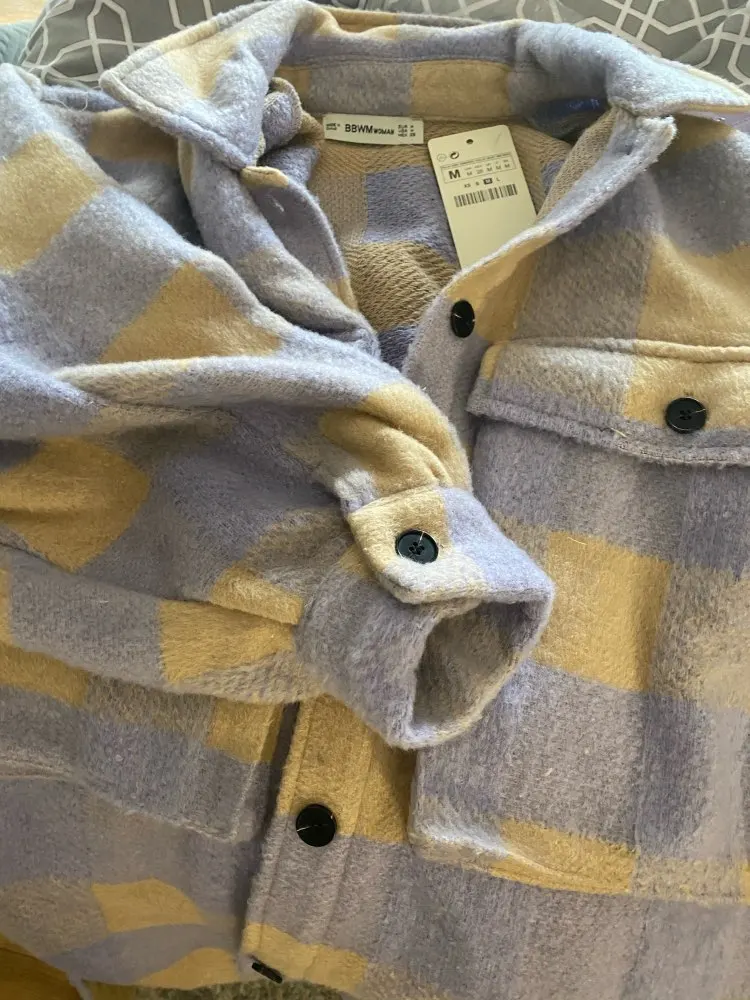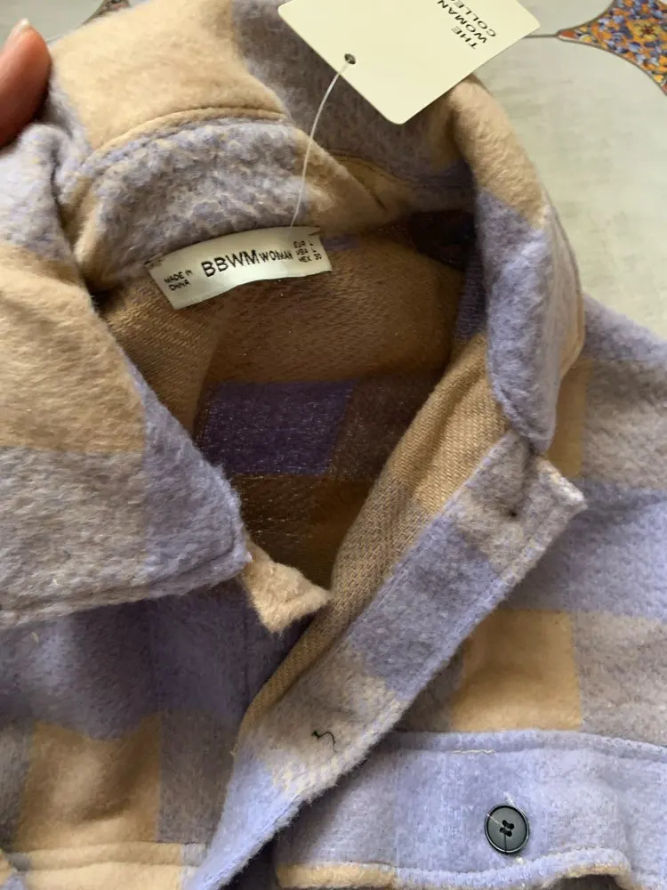 Хорошая рубашка. Тёплая. Оверсайз. Можно даже толстовку под неё надеть. Есть торчащие нитки, неприятного запаха не было. Единственное, со временем она будет в катышках там, где соприкасается с сумкой или чем-то ещё. Цвет, мне показался, немного бледнее, чем на фото. Ну а так за свою цену вполне хорошо.