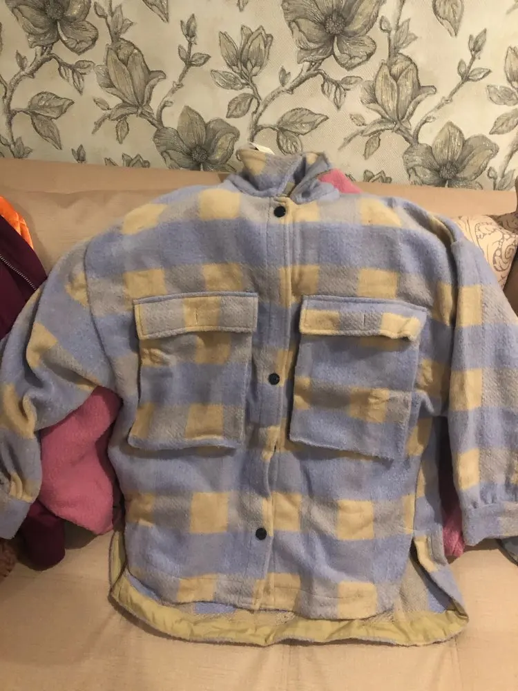 Отличная куртка-рубашка. Размер S на русский 42-44, рост 164. Цвет такой как на фото - при солнечном освещении.