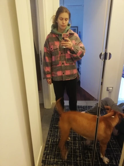 Доставка стандартная 3 недели. Товар не плохого качества, но особого восторга у меня не вызвал. На параметры он 84, от 67, об 92 размер м оказался ооочень оверсайз даже на спортивный костюм. Карманы пришиты ниже груди, что утяжеляет фигуру. Вставляю фото до, позже выставлю фото после перешива модели. Заезду снижать не стала, тк вещь не плохая, но, видно, не мой фасон