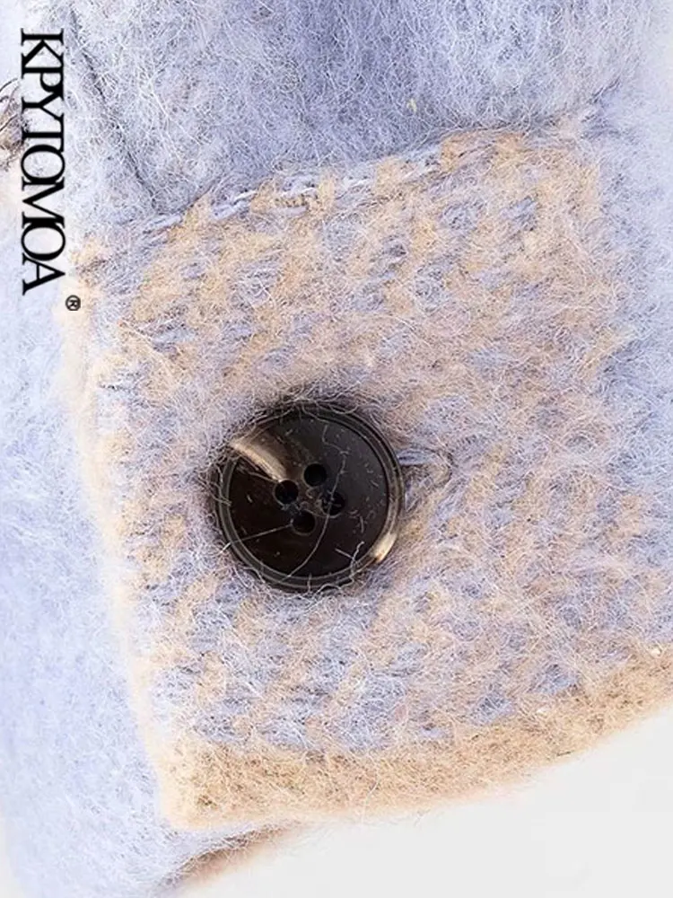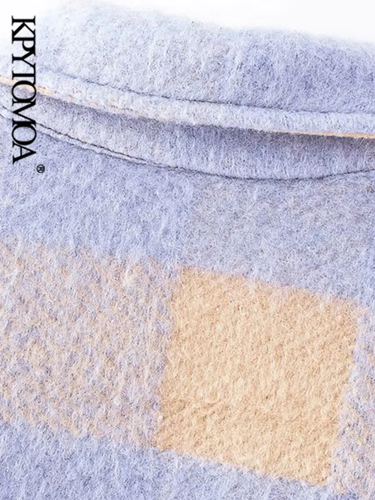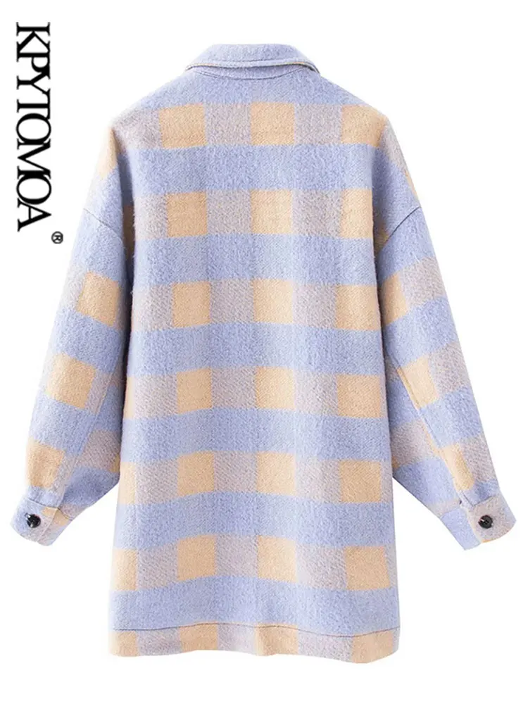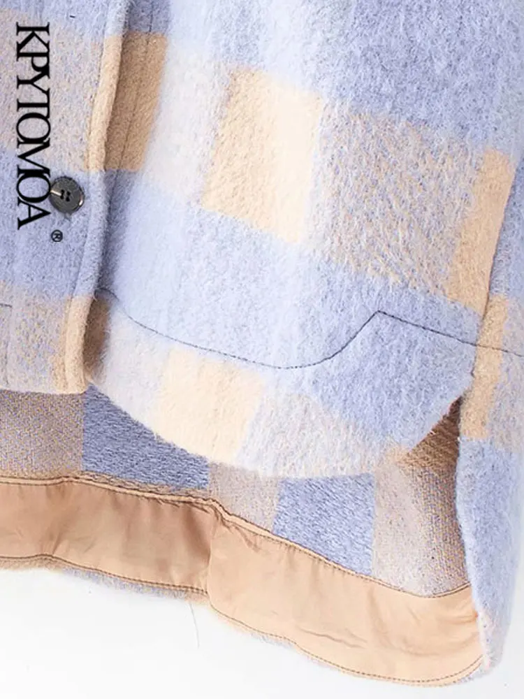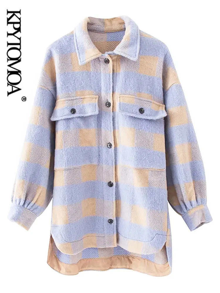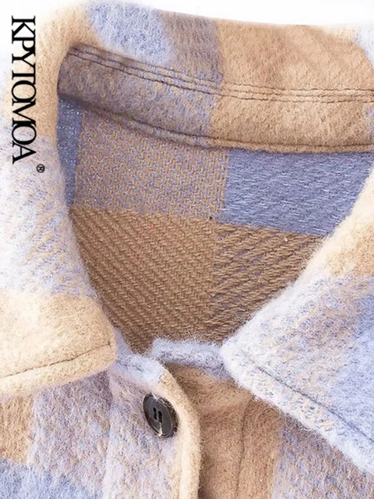 KPYTOMOA женские модные верхние рубашки оверсайз Клетчатая Шерстяная Куртка пальто винтажные карманы Асимметричная женская верхняя одежда шикарные топы