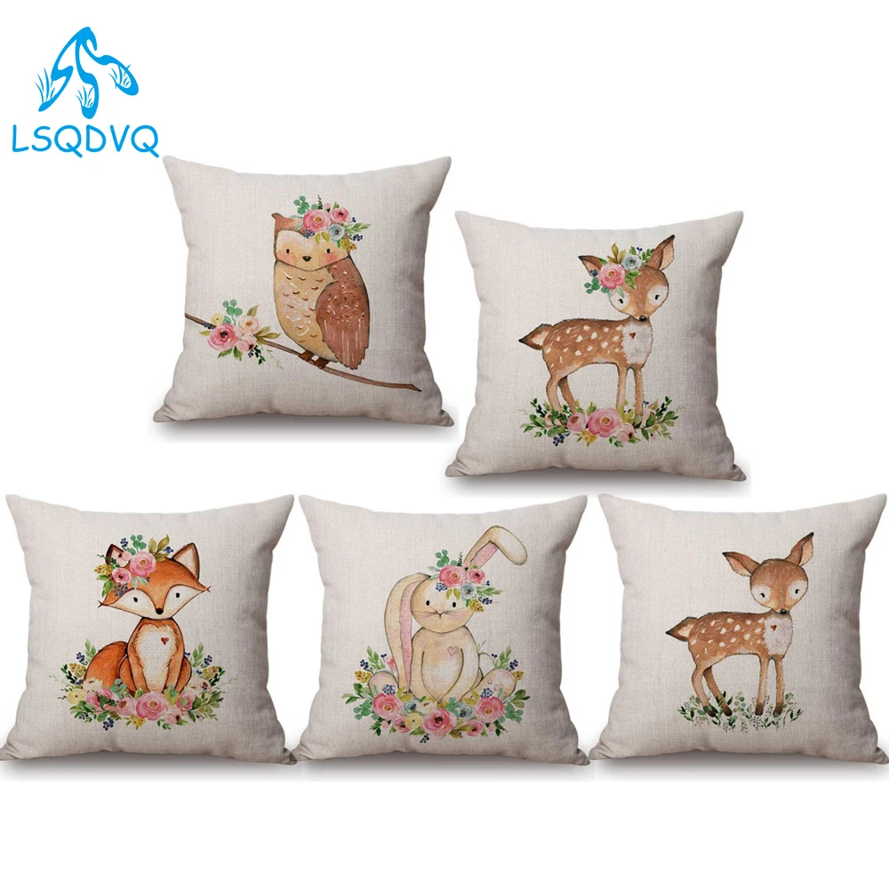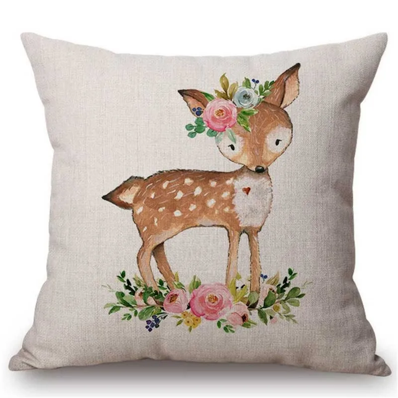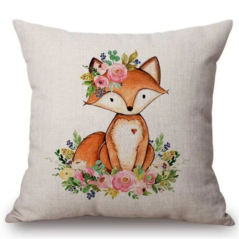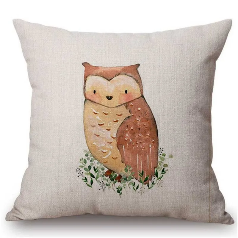 Искусственная подушка с изображением животных, лисы, совы, лосят, ч...