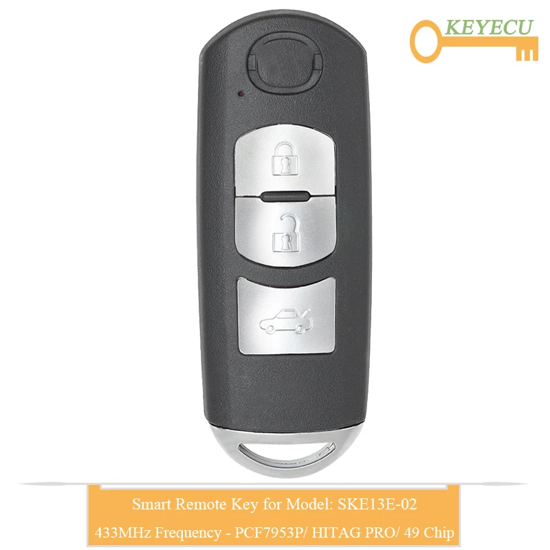 Пульт дистанционного управления KEYECU для Mazda 3 6 2012-2017, брелок 3 кнопки-433 МГц-PCF7953P HITAG PRO 49 Chip-Модель: SKE13E-02